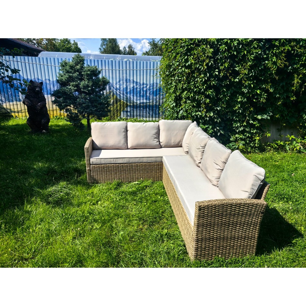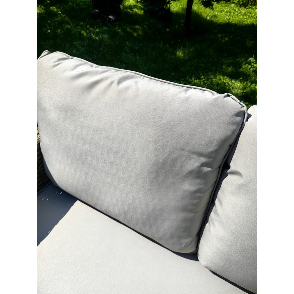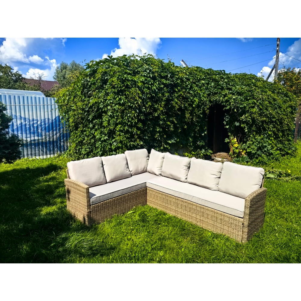 Цветовая гамма:Нейтральный оттенок плетения подчеркивает элегантность дизайна, гармонируя с любыми элементами декора. Подушки насыщенного бежевого цвета из материала Oxford добавляют мягкости и завершённости внешнему виду изделия.