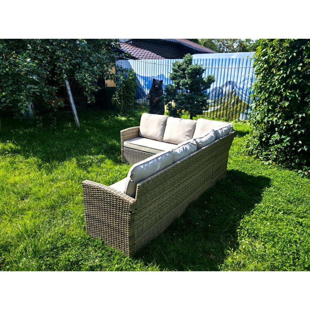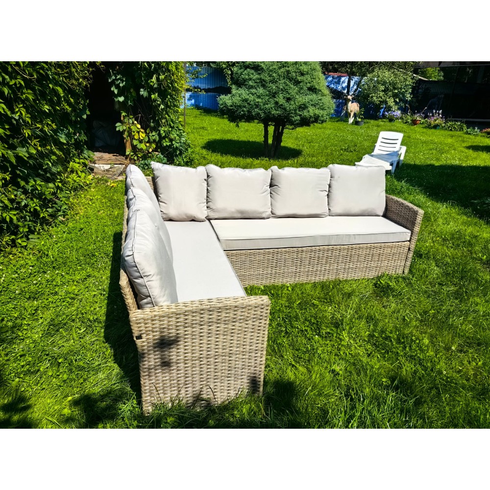 Практичность и безопасность:Устойчивость к загрязнениям и устойчивость против деформации делают этот диван идеальным выбором для активного использования в саду, террасе или патио.
