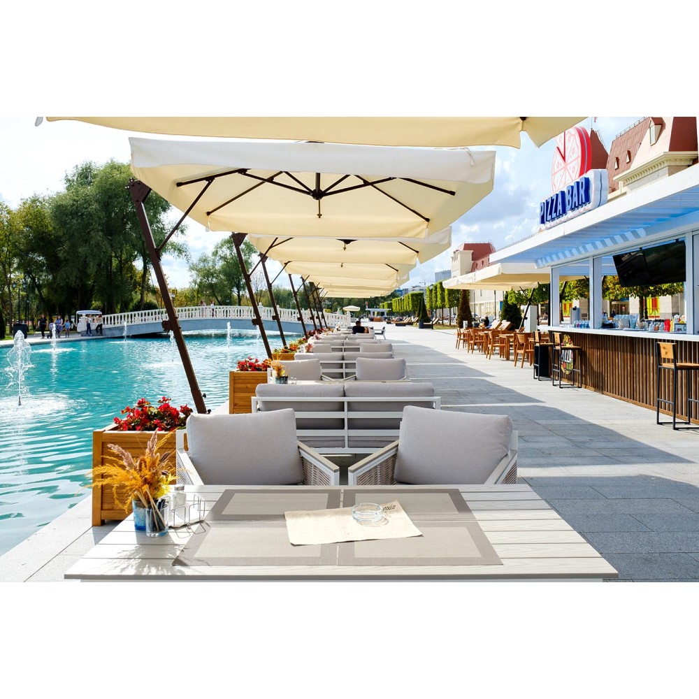 В комплекте - подушки со съёмными чехлами из 100%-го полиэстера, плотностью 300гр/м2. Ткань имеет влагоотталкивающую пропитку.