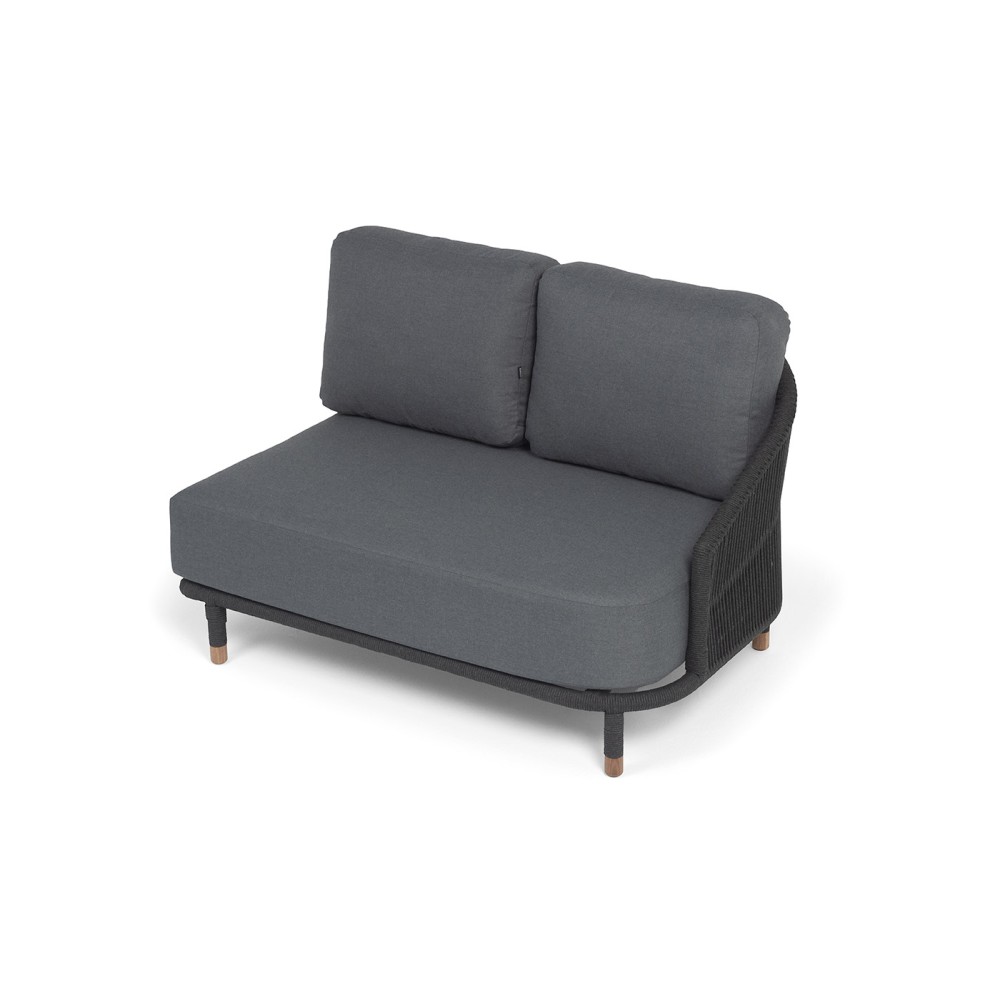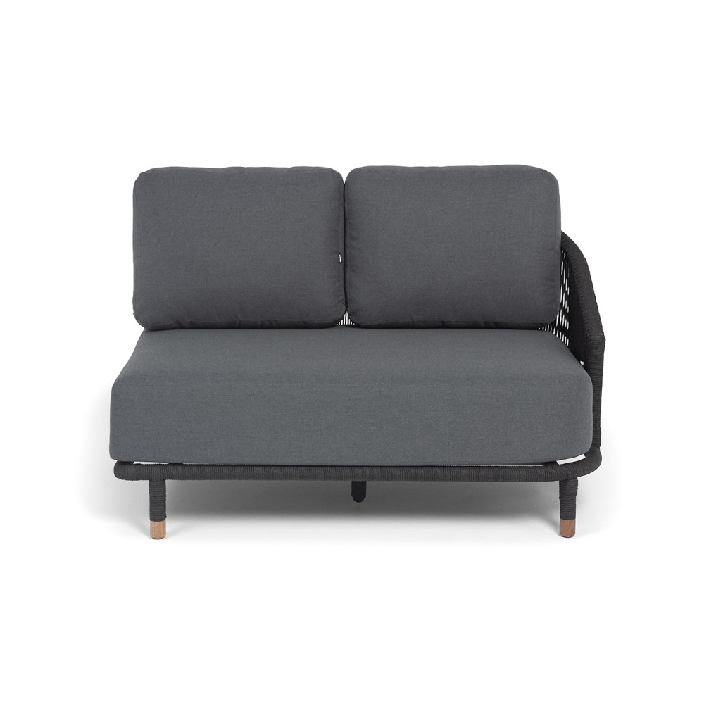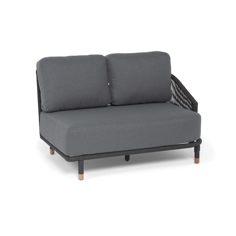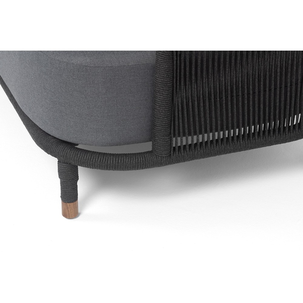 Модуль имеет алюминиевый каркас, окрашенный порошковой краской в темно-серый (RAL7024) цвет. Боковины каркаса вручную оплетены роупом - эластичными синтетическими лентами, изготовленными из высокопрочных полиэфирных волокон. Цвет оплетки - темно-серый.