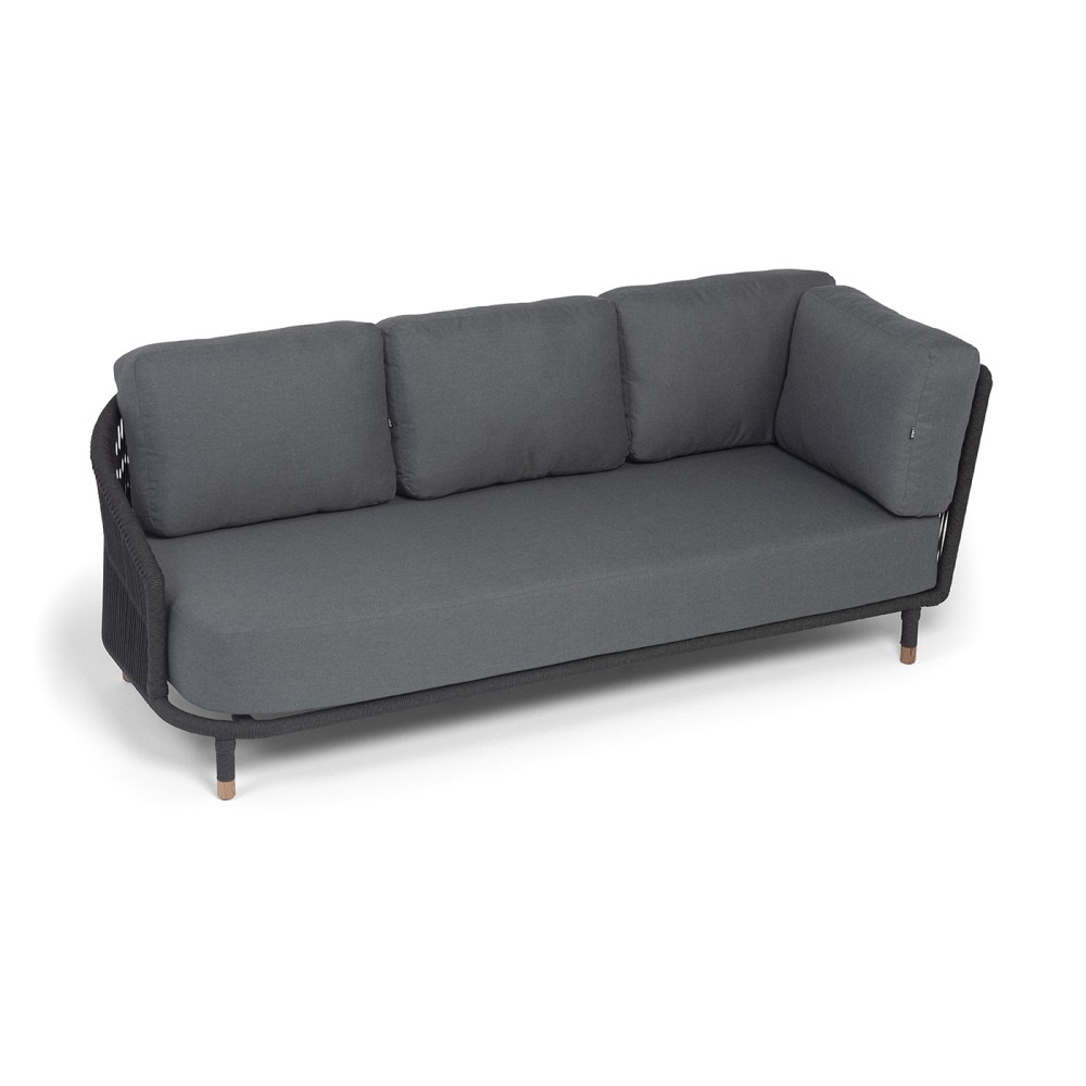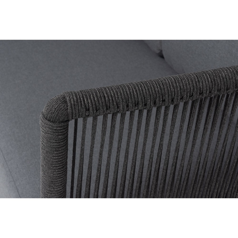 Модуль имеет алюминиевый каркас, окрашенный порошковой краской в темно-серый (RAL7024) цвет. Боковины каркаса вручную оплетены роупом - эластичными синтетическими лентами, изготовленными из высокопрочных полиэфирных волокон. Цвет оплетки - темно-серый.