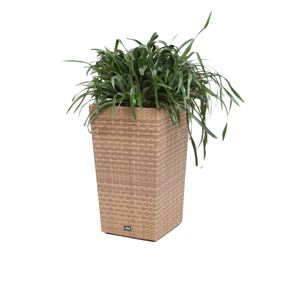 Плетеное кашко «Капучино» подходит для комнатных и уличных растений. Изготовлено из плоского искусственного ротанга соломенного цвета. Обладает высокой стойкостью к погодным условиям, перепадам температуры, не подвергается коррозии, поэтому можно использовать на открытом воздухе круглый год.