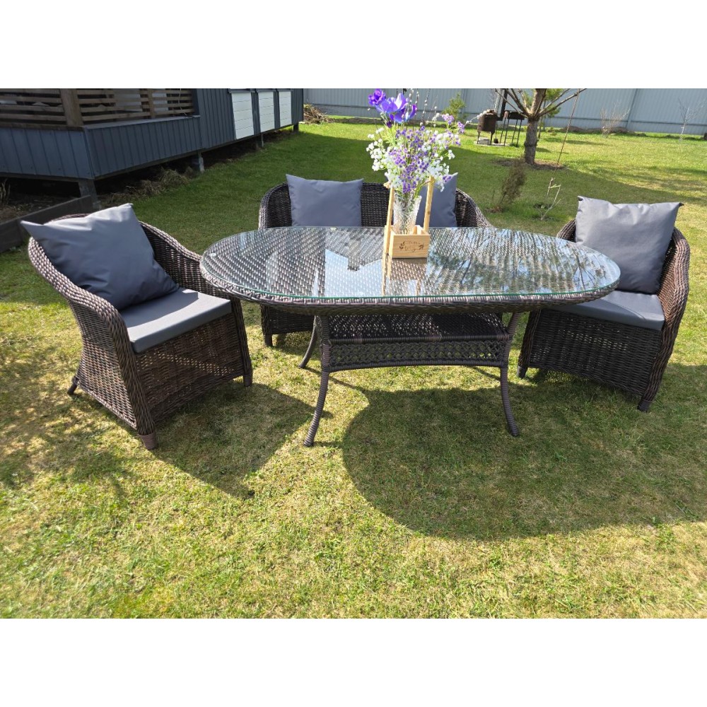 ✅ Полная комплектация — стол + софа + кресла, подушки в комплекте