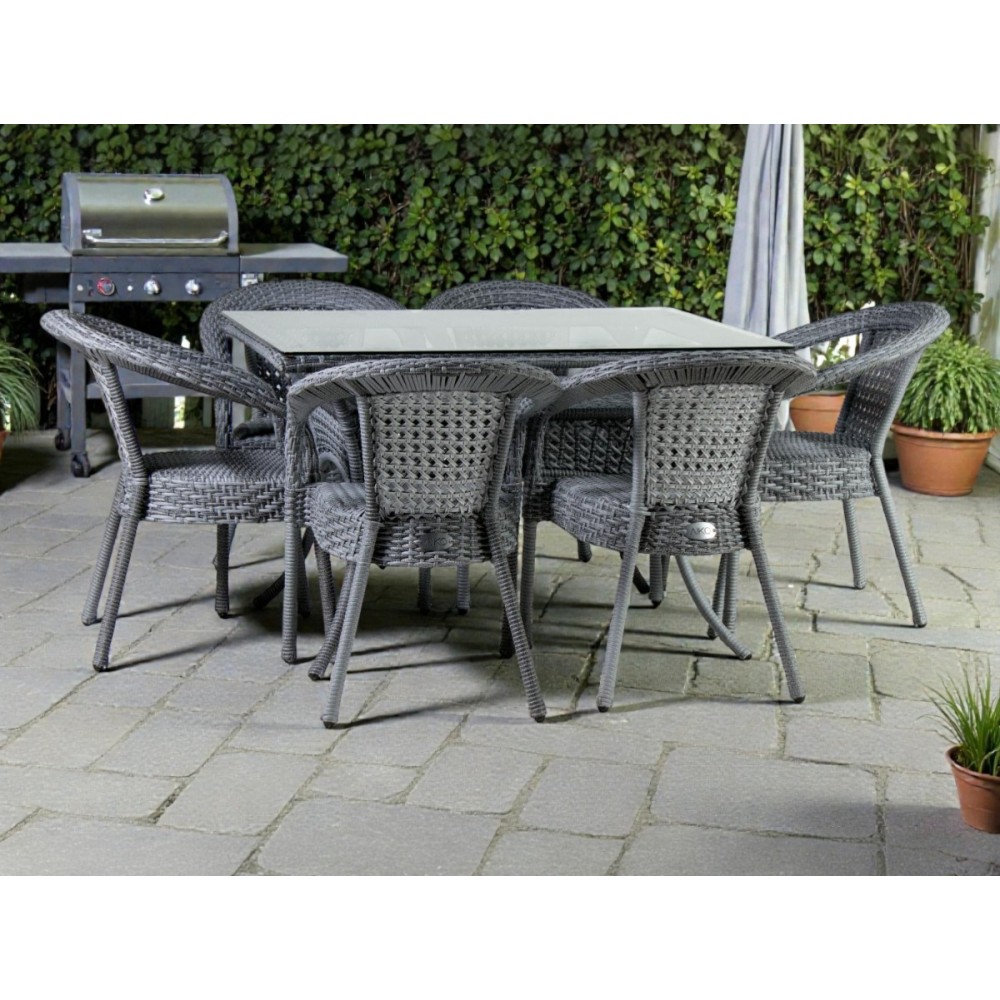 DECO 6 PLUS — это улучшенный комплект мебели премиум-класса для организации комфортной зоны отдыха на открытом воздухе. Прямоугольный стол размером 150×90 см идеально подходит для семейных обедов и встреч с друзьями. В комплекте всё необходимое для комфортного времяпрепровождения компании до 6 человек: просторный стол (150×90×75 см) и 6 эргономичных кресел (53×60×80 см).