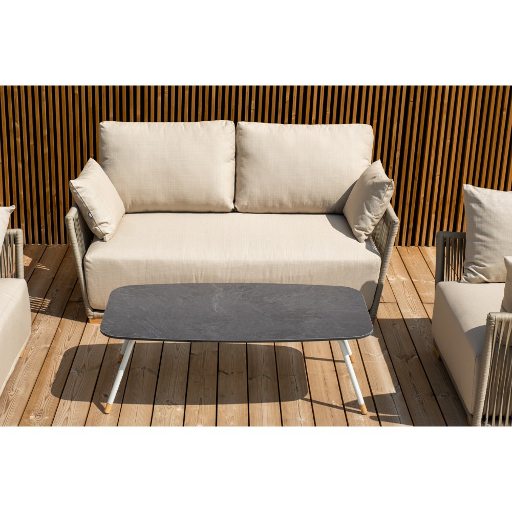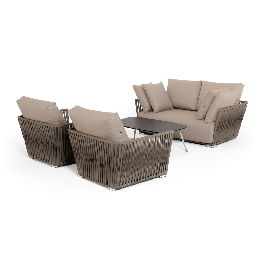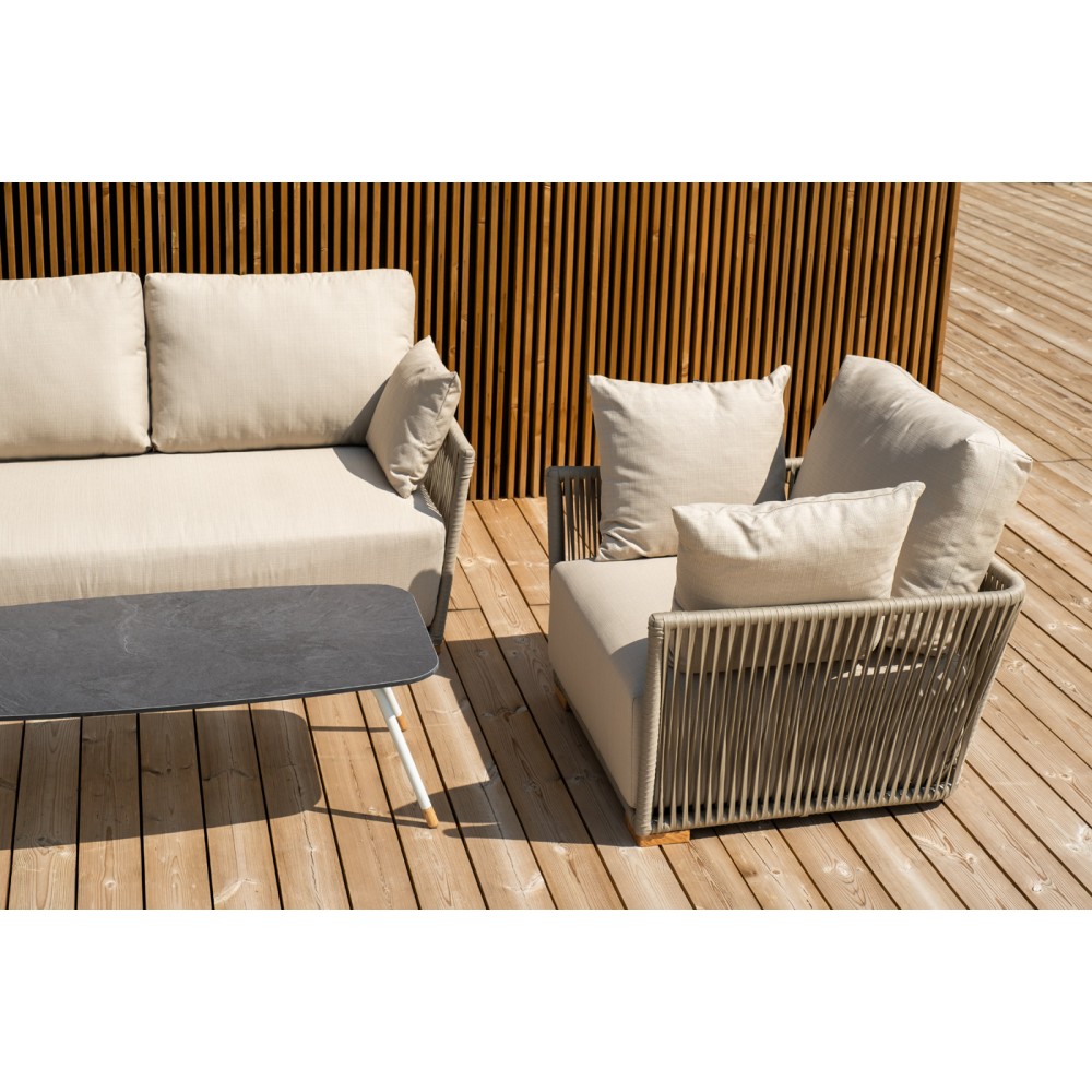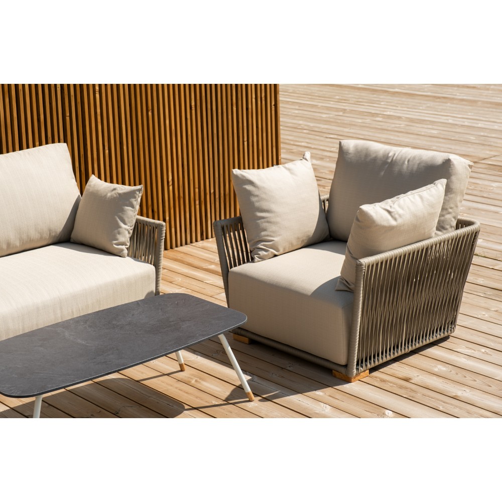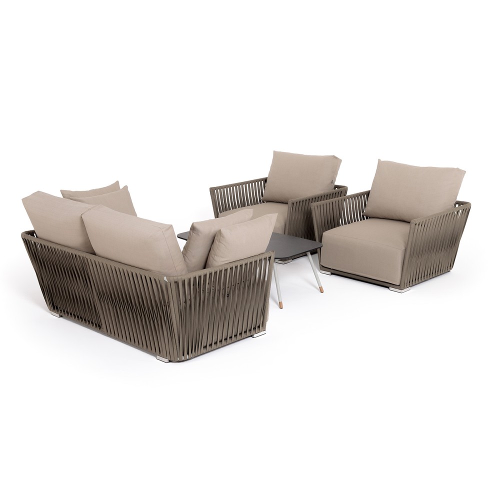 "Верона" журнальный стол из HPL 120х65, H40, каркас светло-серый (RA L7035) муар, цвет столешницы "серый гранит" 1шт. 1 200Х650Х400, "Форли" диван 2-местный плетеный из роупа, каркас алюминий светло-серый (RAL7035) муар, роуп серо-коричневый 23мм, ткань Mossle бежевая 1шт. 1 770Х920Х610, "Форли" кресло плетеное из роупа, каркас алюминий светло-серый (RAL7035) муар, роуп серо-коричневый 23мм, ткань Mossle бежевая 2шт. 1 070Х920Х610,
