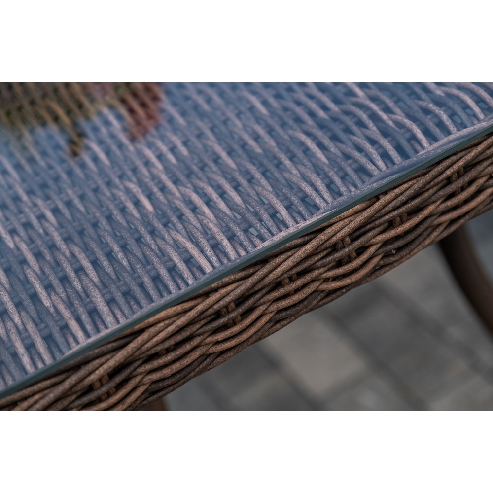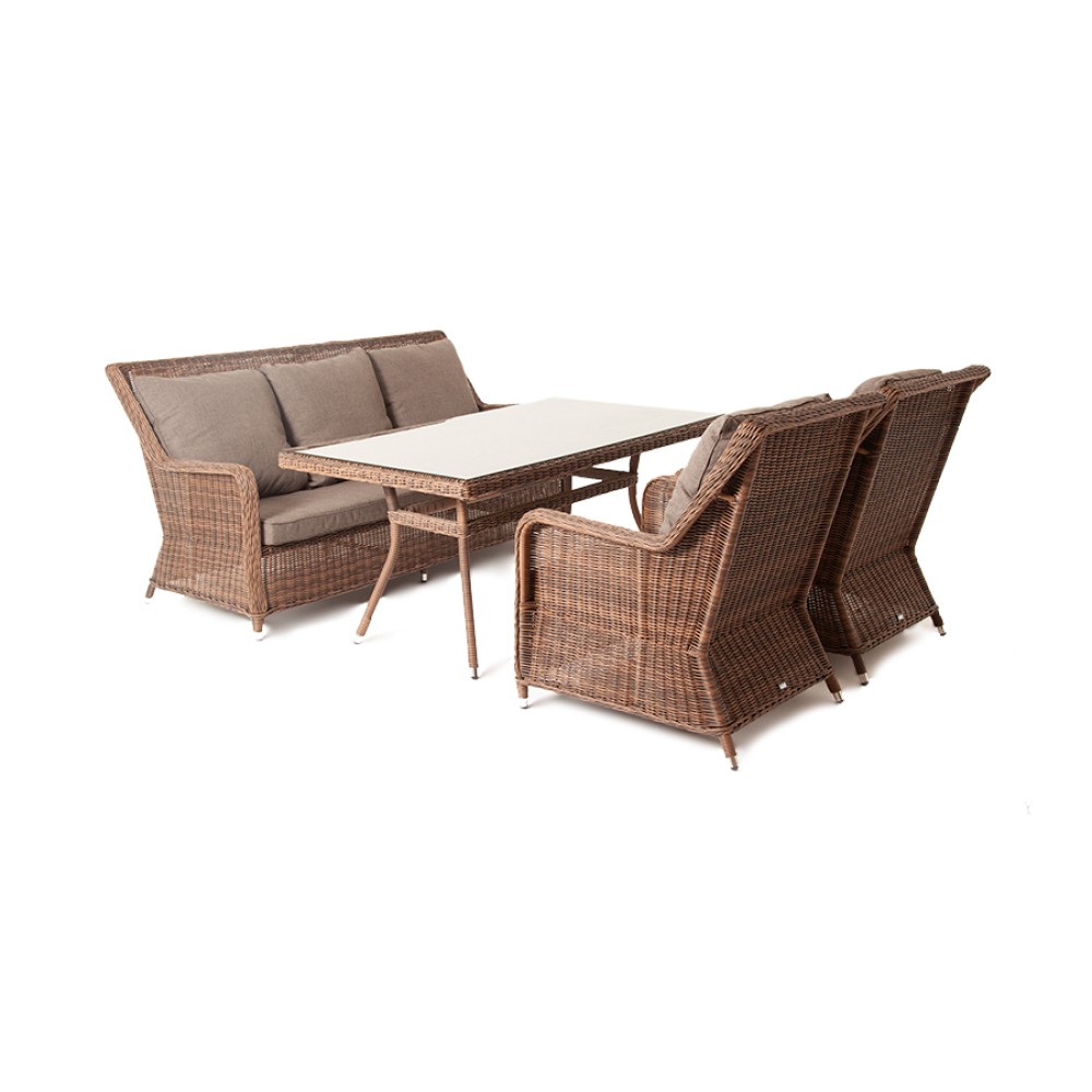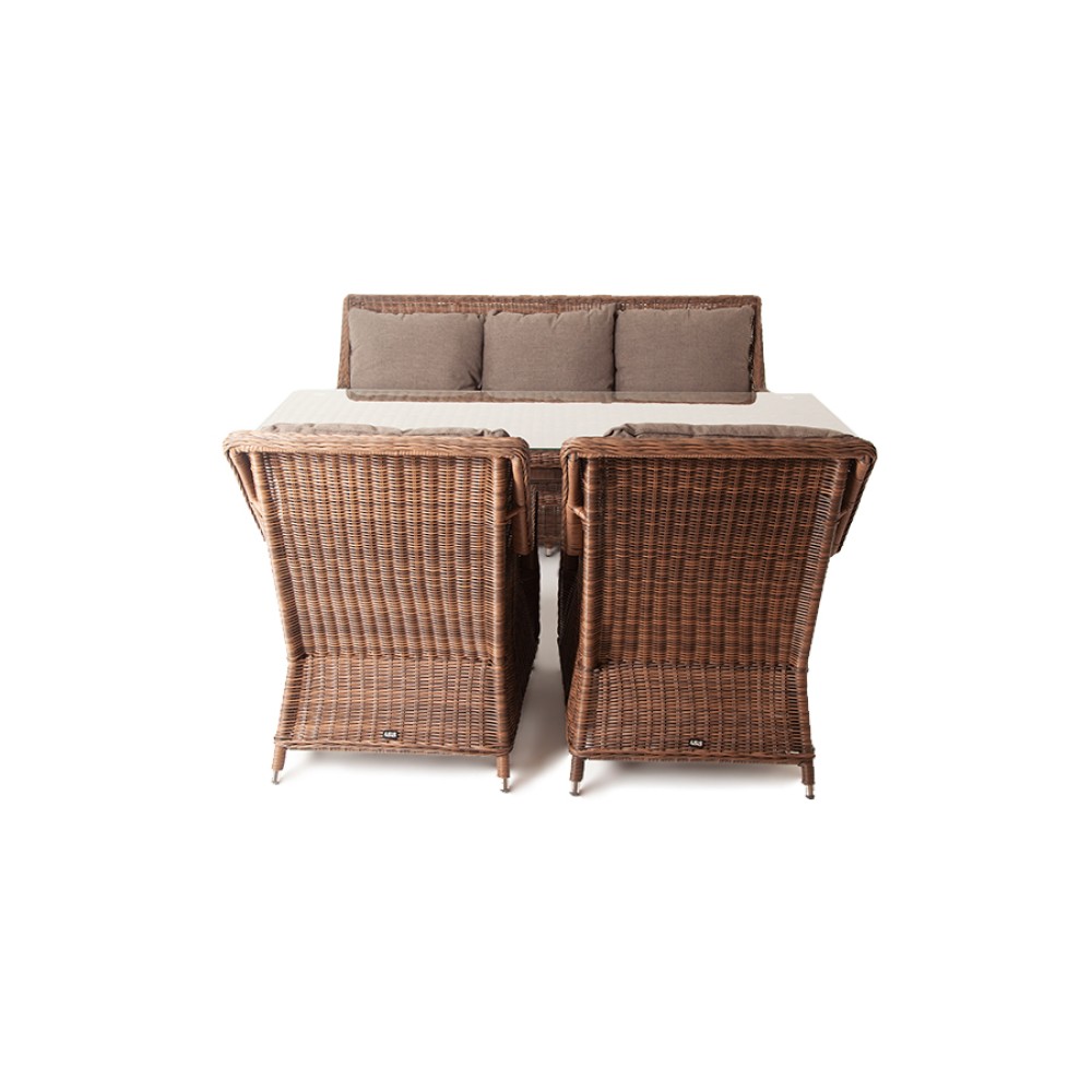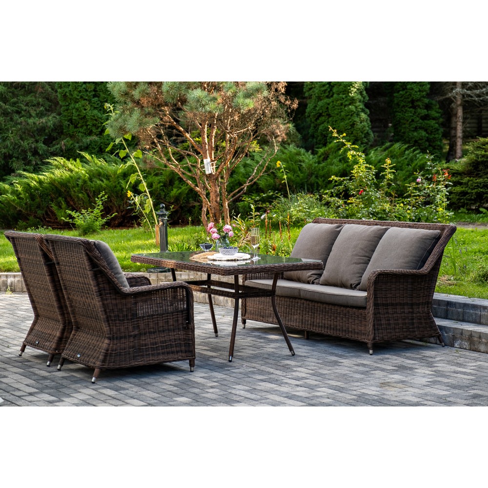 Столешница обеденного стола изготовлена из высокопрочного закаленного стекла, которое по стандартам используется в пищевой промышленности. "Гляссе" диван трехместный из искусственного ротанга, цвет коричневый 1шт. 1 900Х880Х990, "Гляссе" кресло плетеное из искусственого ротанга, цвет коричневый 2шт. 730Х880Х990, "Латте" плетеный стол из искусственного ротанга 160х90см, цвет коричневый 1шт. 1 600Х900Х750,