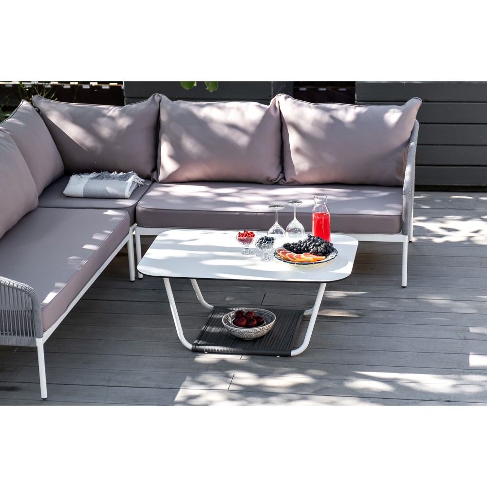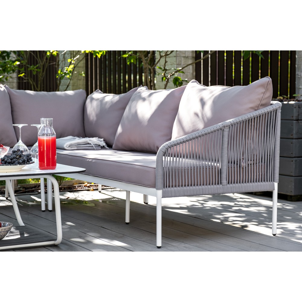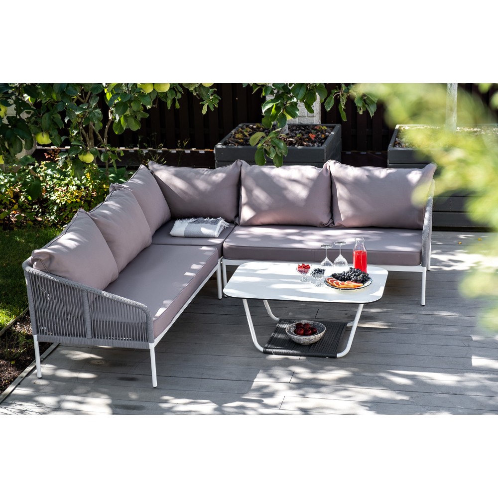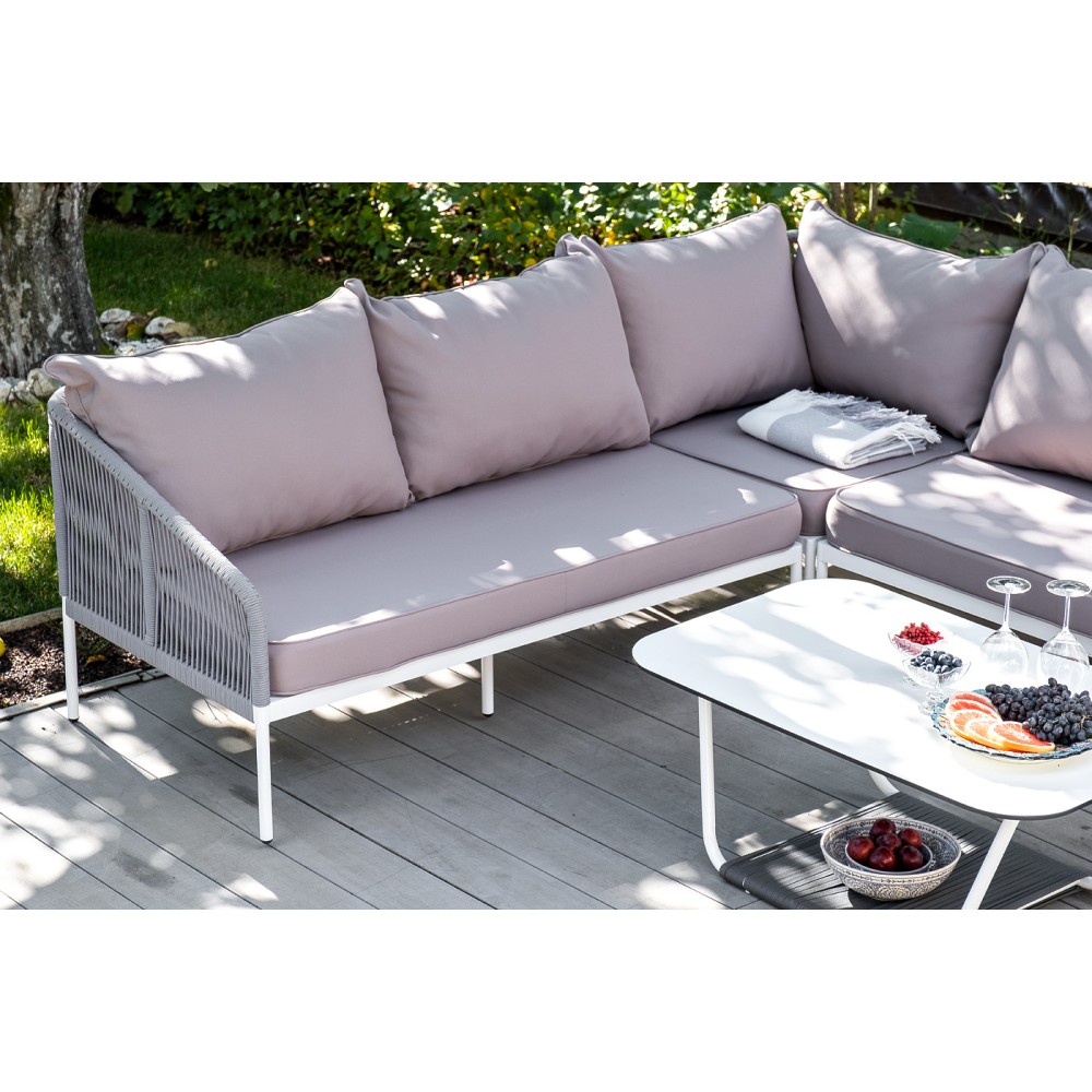 Диван идет в комплекте с мягкими подушками в чехлах "Гранада" журнальный стол 90х60см из HPL, цвет "молочный", каркас белый муар, роуп темно-серый круглый 1шт. 900Х600Х420, "Канны" левый модуль плетеный из роупа, каркас алюминий светло-серый (RAL7035) шагрень, роуп серый круглый, ткань серая 017 1шт. 1 480Х850Х750, "Канны" правый модуль плетеный из роупа, каркас алюминий светло-серый (RAL7035) шагрень, роуп серый круглый, ткань серая 017 1шт. 1 480Х850Х750, "Канны" угловой модуль плетеный из роупа, каркас алюминий светло-серый (RAL7035) шагрень, роуп серый круглый, ткань серая 017 1шт. 850Х850Х750,