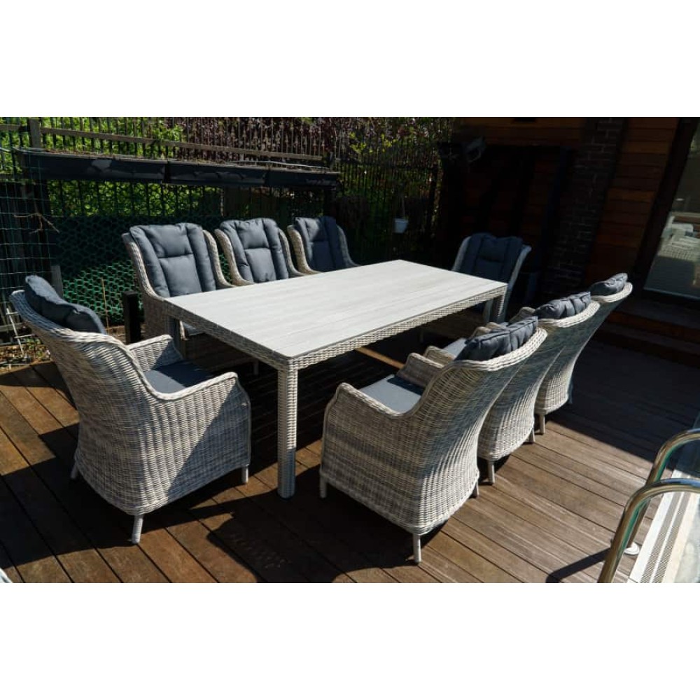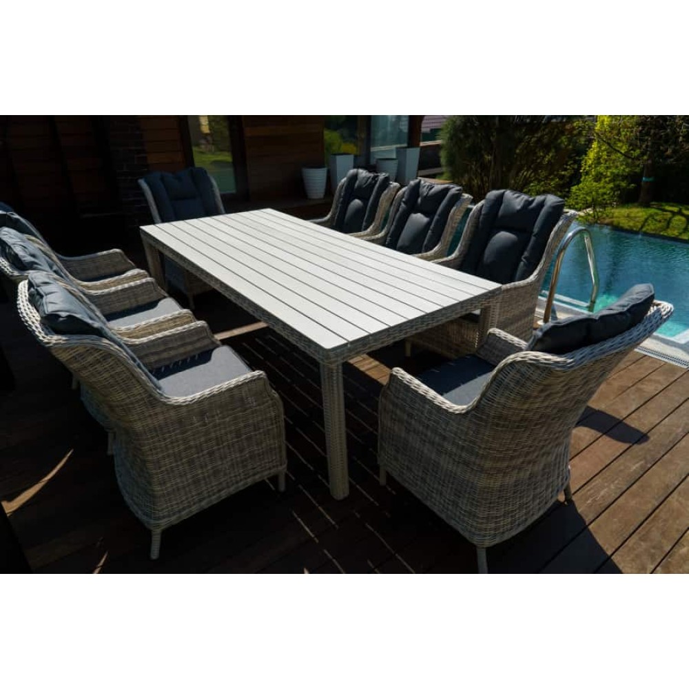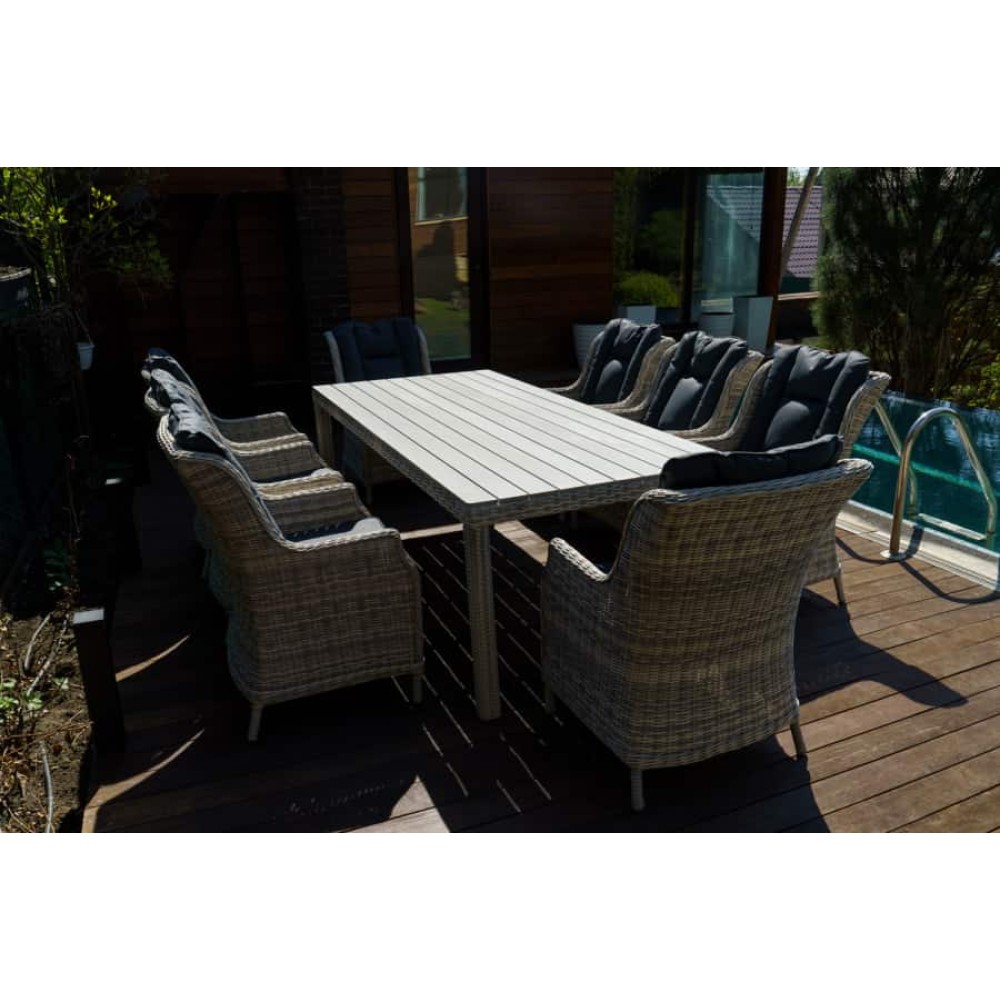 Набор мебели из искусственного ротанга: Обеденный стол ВЕНЕЦИЯ 230 + 8 кресел БЕРГАМО (цвет серый) можно устанавливать в самых разнообразных местах: на летних верандах, садовых площадок и под открытым небом.