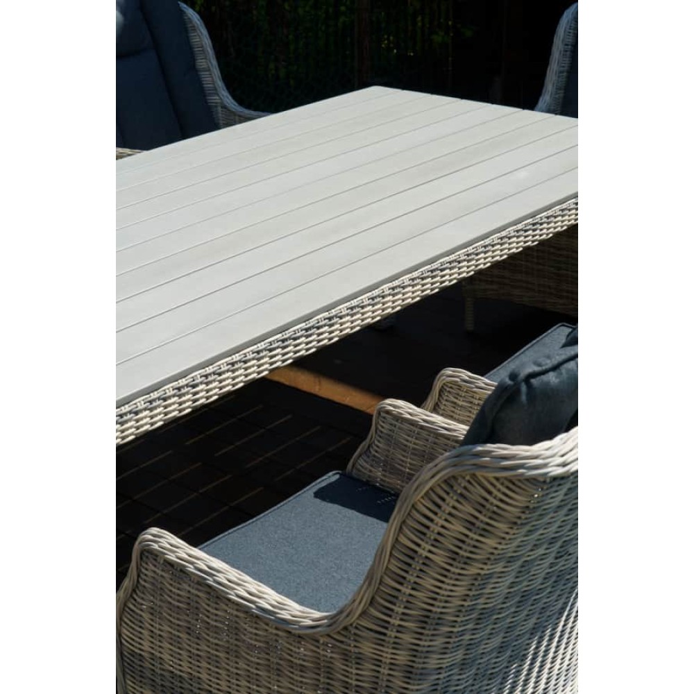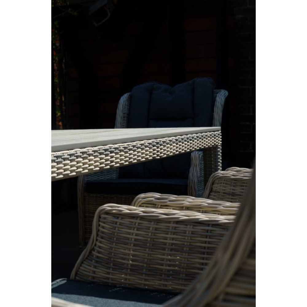 - Комплектация: 1 шт. — стол, 8 шт. — кресел с подлокотниками и подушками.