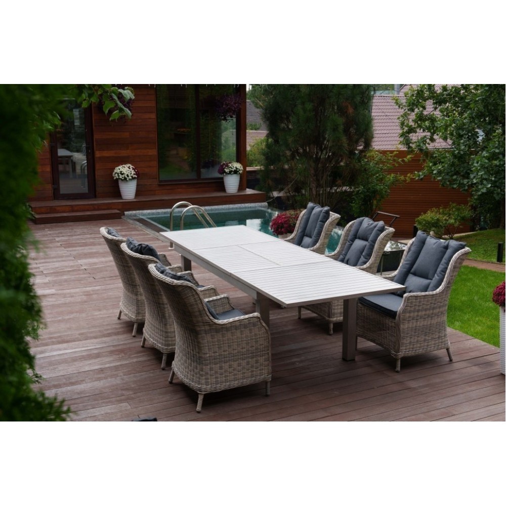 Стол легко и просто раскладывается за счет вставки в центре, изготовлен из алюминия, отличается легкостью и прочностью! Стол ГАРДА можно устанавливать в самых разнообразных местах: на летних верандах, садовых площадок и под открытым небом – ему нипочем капризы природы.