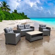 Лаунж-зона KARL серая сочетает в себе комфортабельность, вместимость и стиль. Мебель выполнена из искусственного ротанга ручного плетения, имеет прочный стальной каркас.