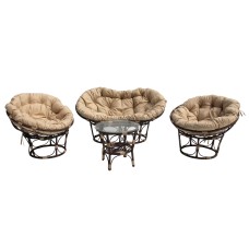 В составе комплекта: трехместный диван, журнальный стол и 2 кресла. Высококачественная лоза из полиротанга коричневого цвета стойкая к любым атмосферным явлениям. Крепкий стальной каркас..