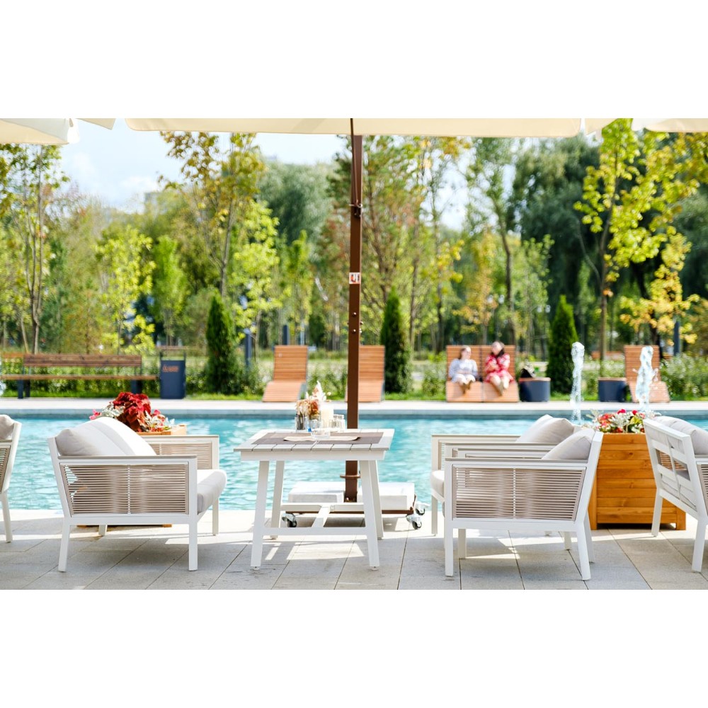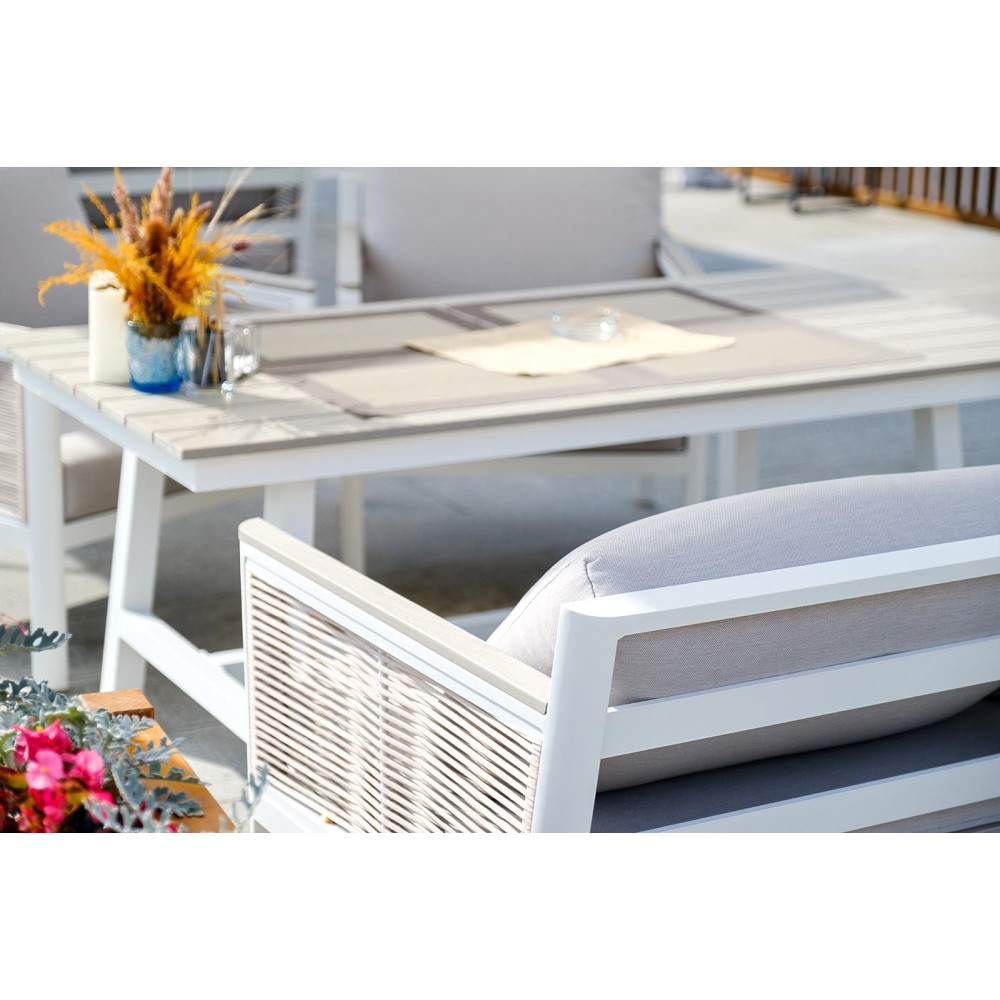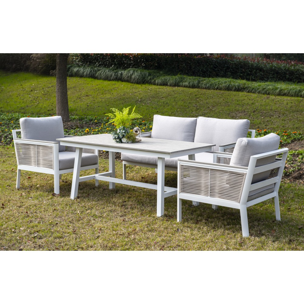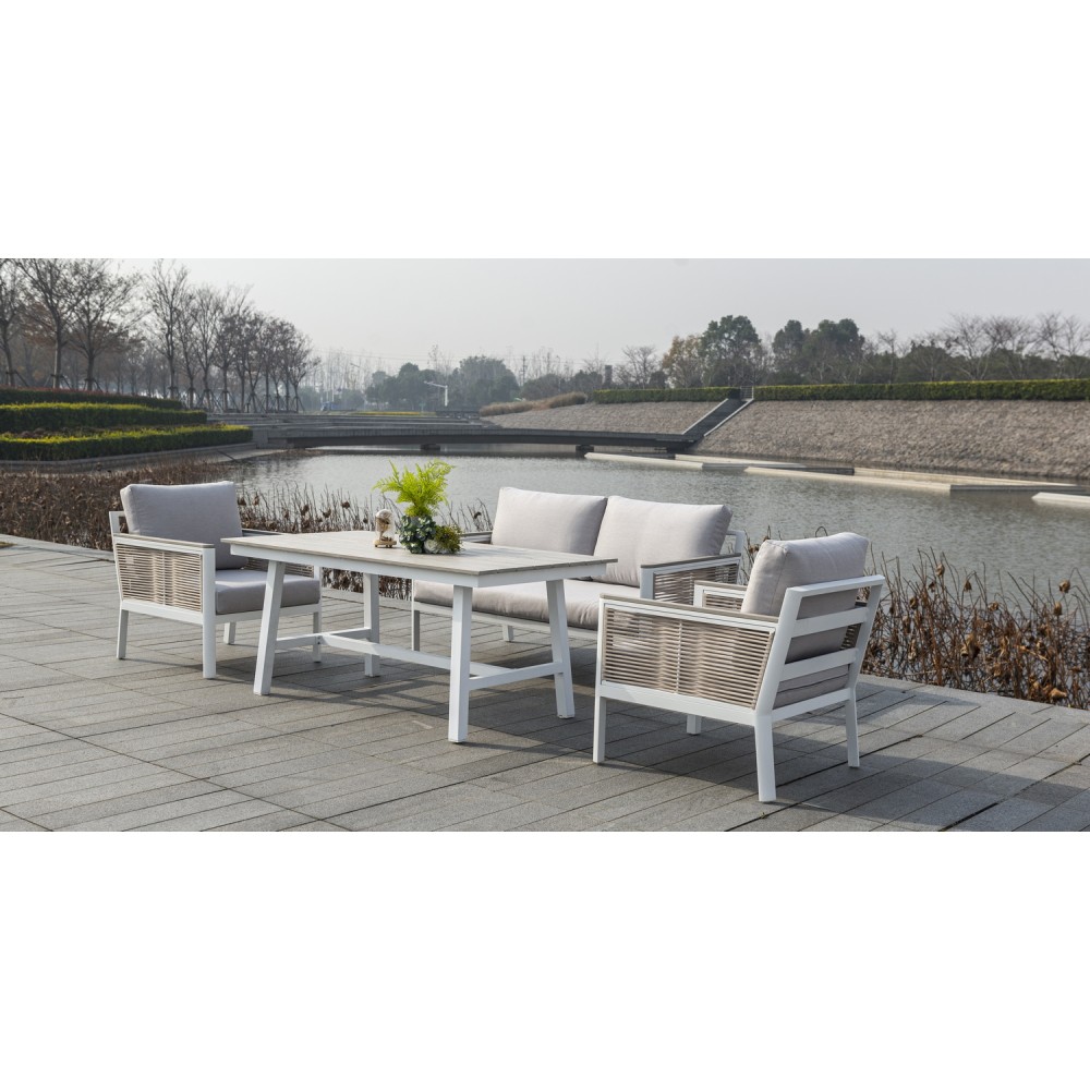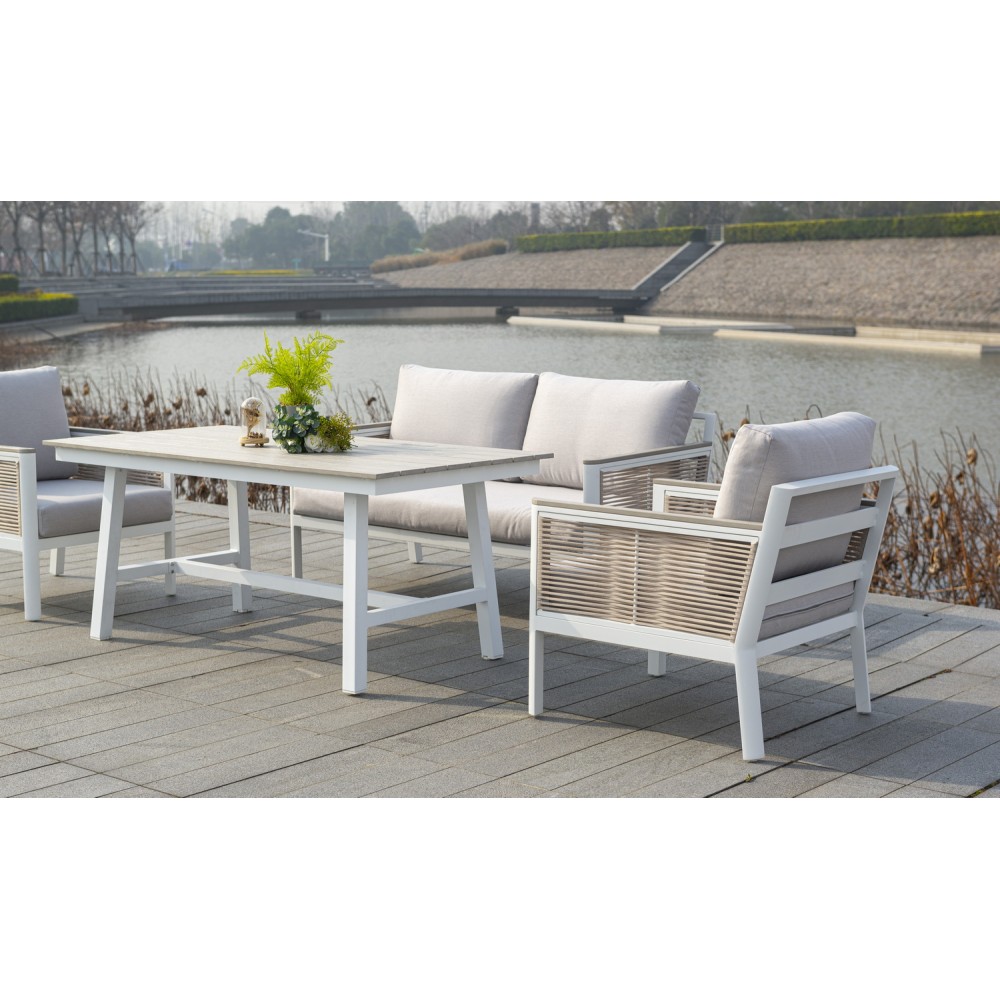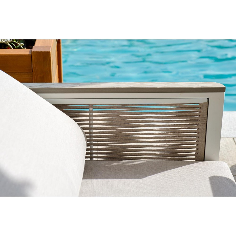 «Сан Ремо» лаунж-зона, алюминиевый каркас белого цвета, вручную оплетенный роупом серо-коричневого цвета.