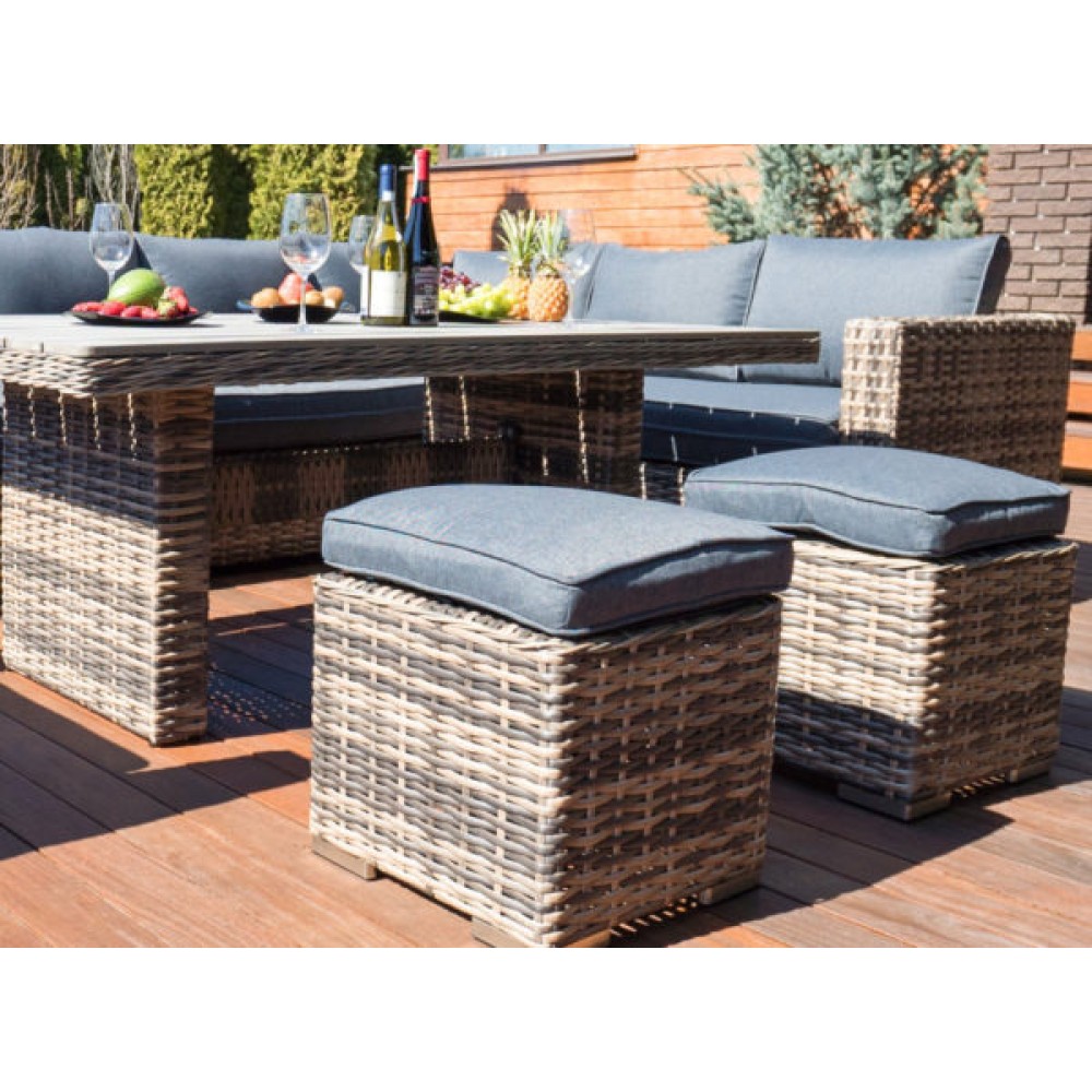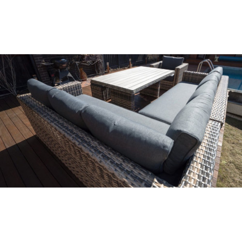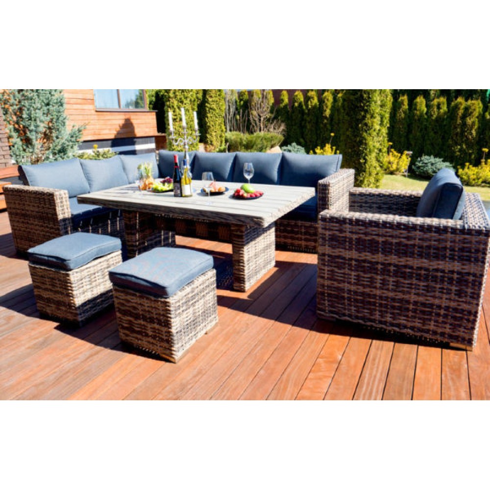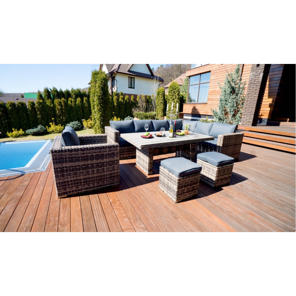 - Материал: поливуд (искусственное дерево)/искусственный ротанг/алюминиевый каркас/подушки-Olefine