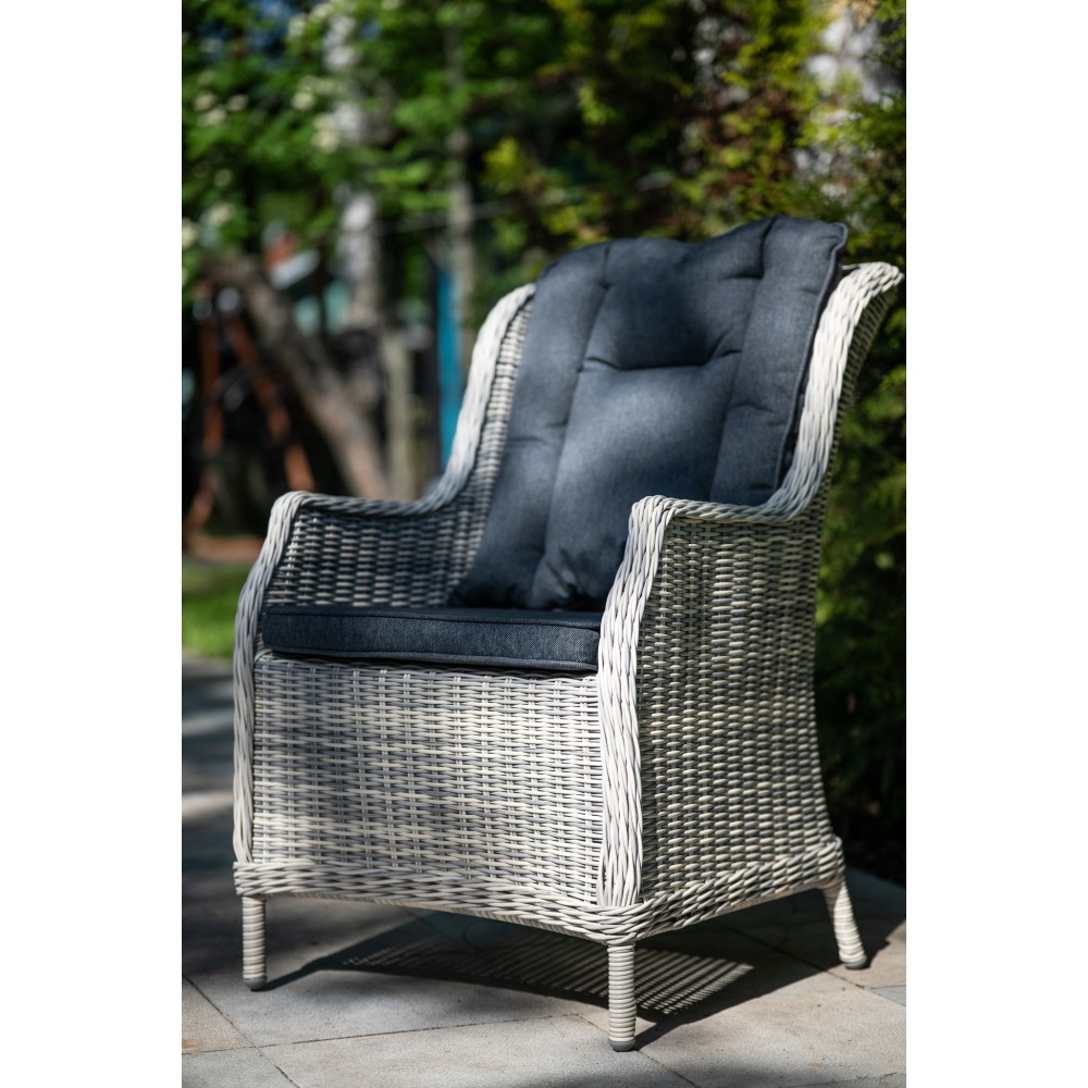 Кресло БЕРГАМО из серого искусственного ротанга с темно-серой подушкой — минималистичный комфорт для современного сада