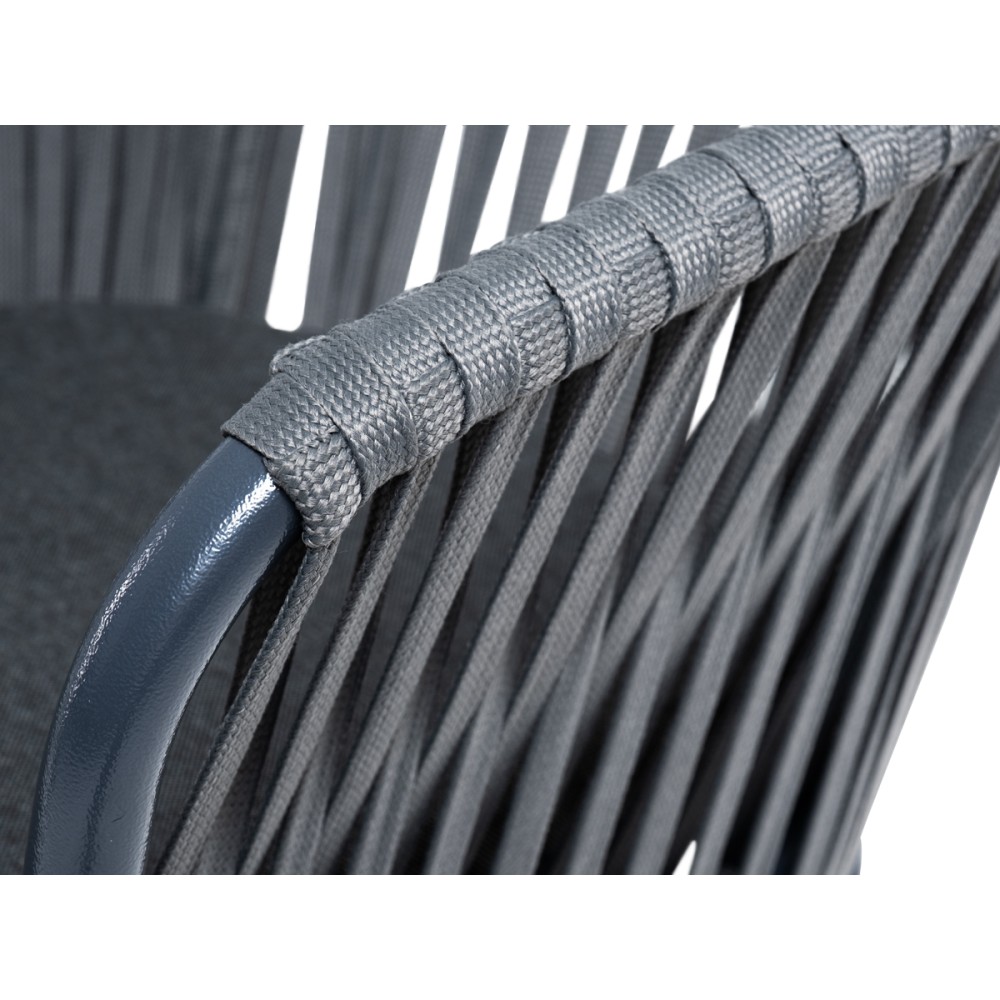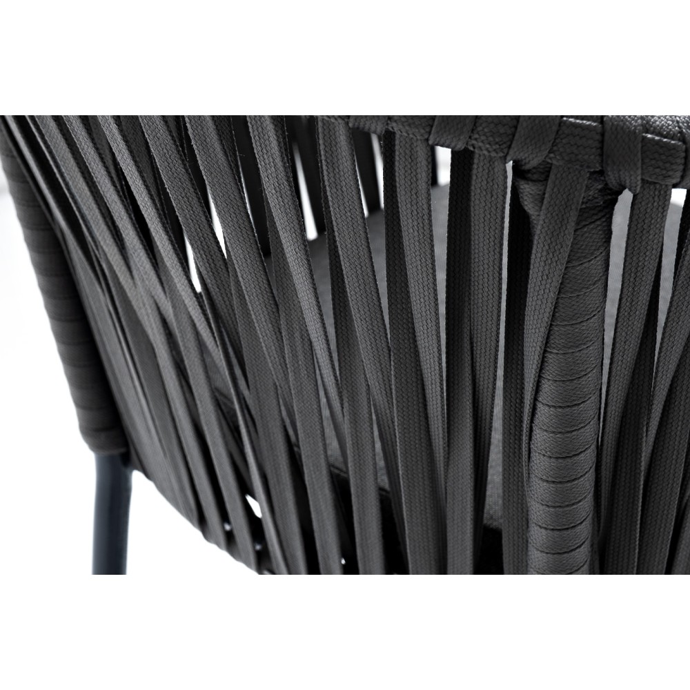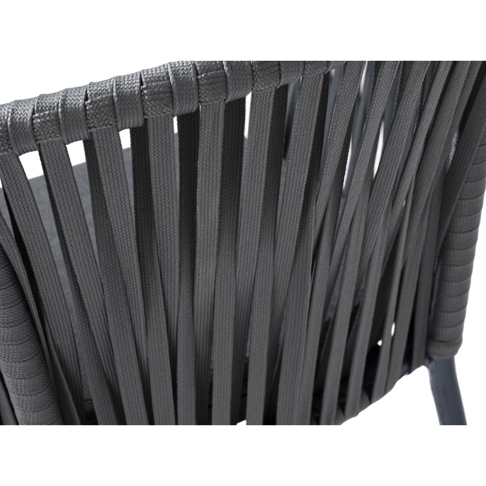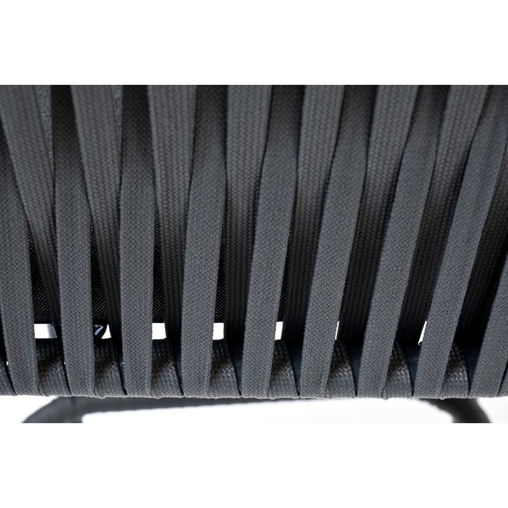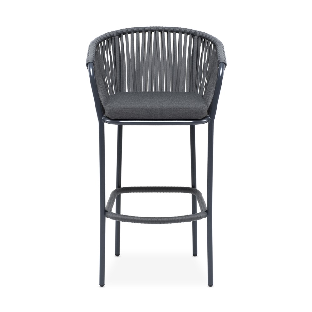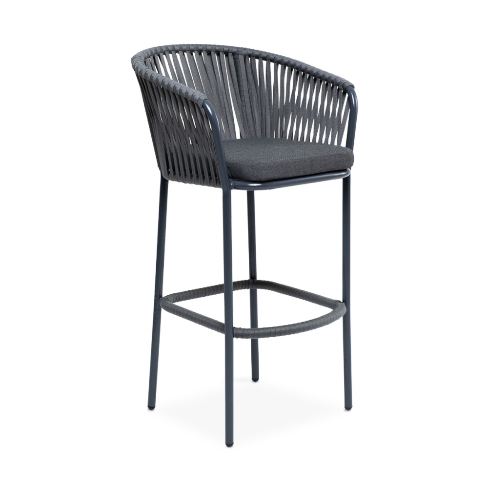 Барный стул «Бордо» представлен в стальном каркасе темно-серого цвета. Оплетен вручную эластичными синтетическими лентами из высокопрочных полиэфирных волокон серого цвета.