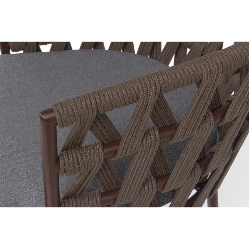 Каркас вручную оплетен коричневым роупом - эластичными синтетическими лентами из высокопрочных полиэфирных волокон.
