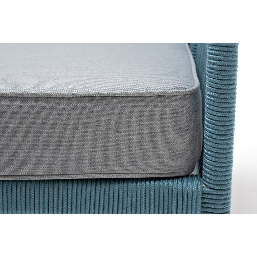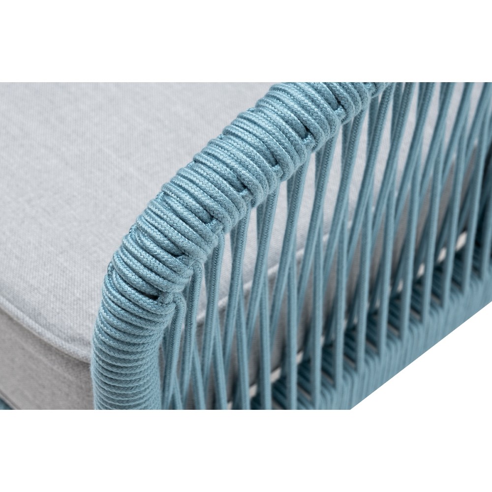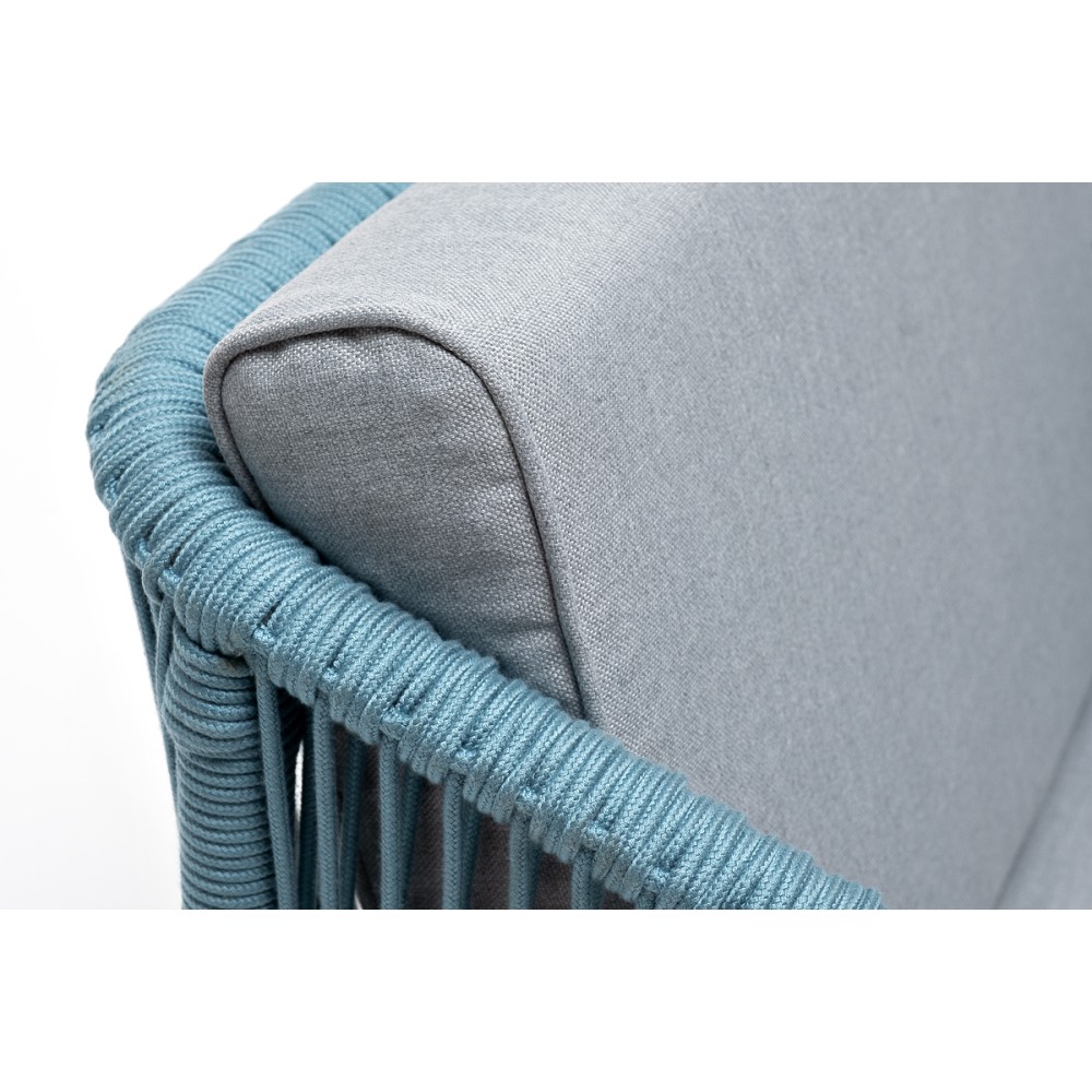 Плетение выполнено из прочного роупа бирюзового цвета, который добавляет яркости и живописности в ваш интерьер.