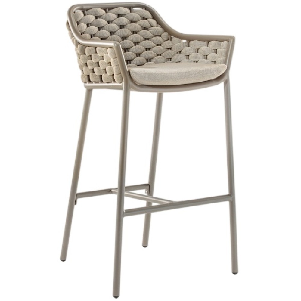 Данная продукция возится только под заказ с фабрики по предоплате. Барное кресло Panama сочетает в себе строгие линии алюминиевого каркаса и мягкое плетение резинового каната с покрытием из акрила. Сиденье комфортно благодаря подушке с чехлом, устойчивым к пятнам и ультрафиолетовому излучению. Барные кресла подойдут для барных стоек и столов в помещениях кафе, баров и ресторанов и на открытых площадках.