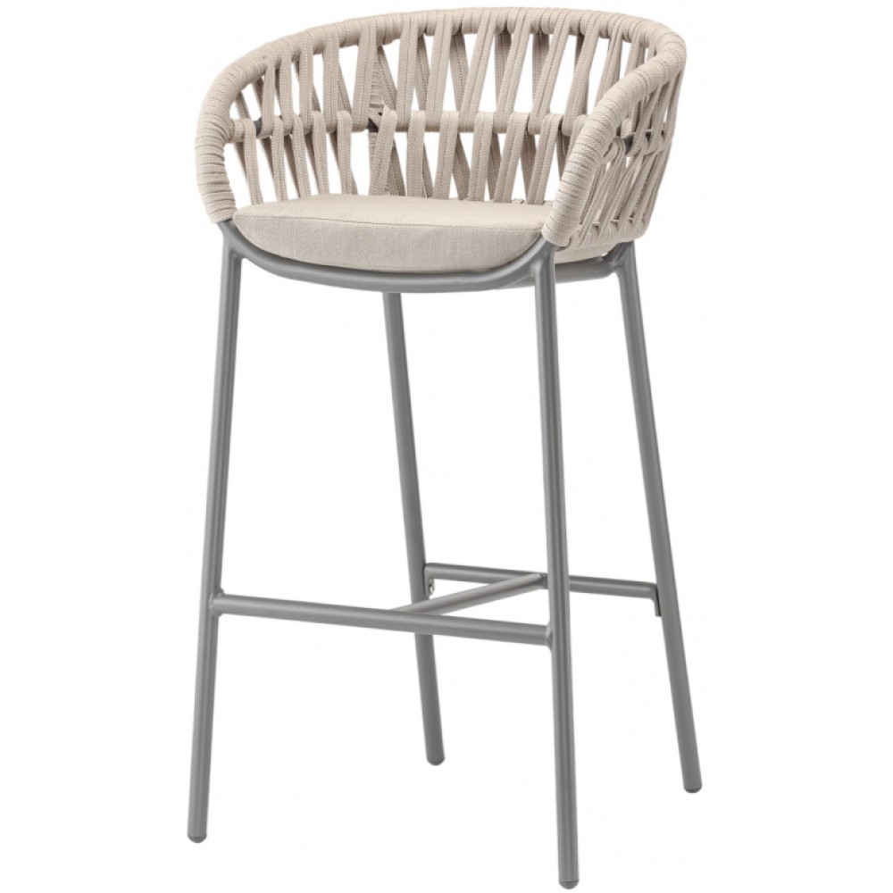 Данная продукция возится только под заказ с фабрики по предоплате. Барное кресло Tahiti выполнено из алюминия с плетением из полиолефинового каната. Высококачественныематериалыпозволяют использовать модель в помещении и на открытом воздухе. Мягкая подушка на сиденье из прочной быстросохнущей ткани, устойчивой к воздействию ультрафиолетовых лучей и плесени.