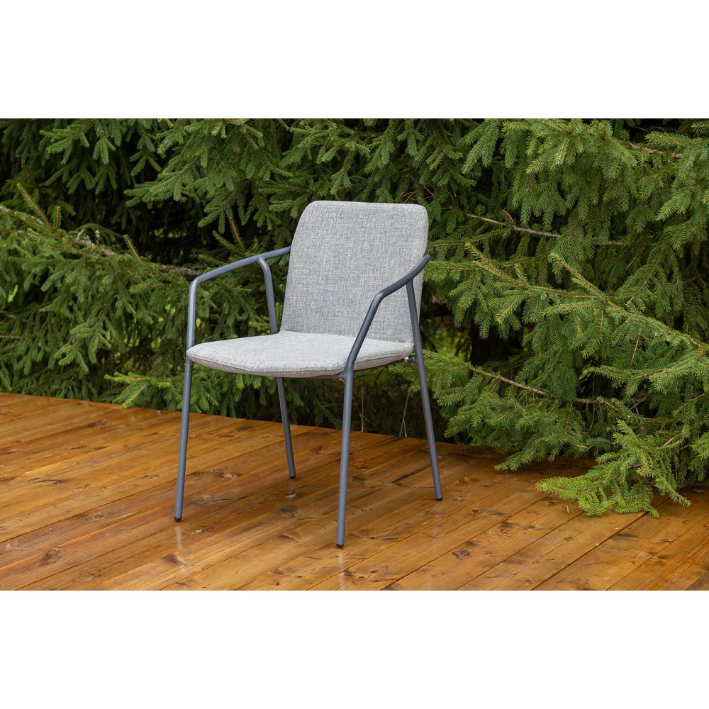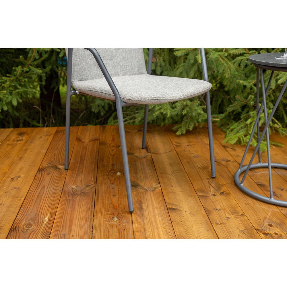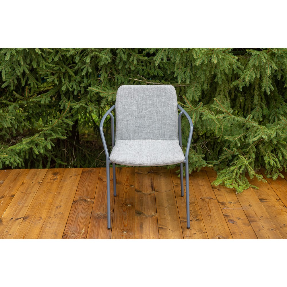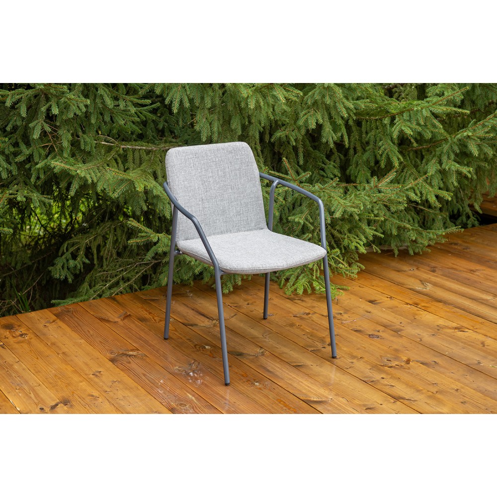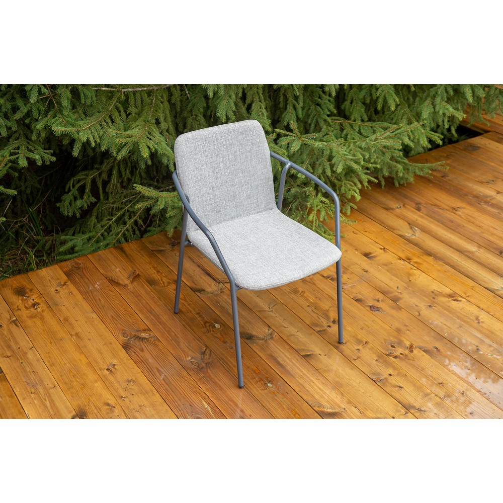 Стул «Марокко» изготовлен из современного материала — текстилена Nanotex. Каркас выполнен из алюминия, окрашенного в темно‑серый цвет (RAL 7024), что обеспечивает прочность и лёгкость конструкции. Размеры стула — 575×600×800 мм. Модель отличается износостойкостью, устойчивостью к влаге и ультрафиолету, проста в уходе и подходит для использования на террасе, веранде, в кафе или загородном доме.