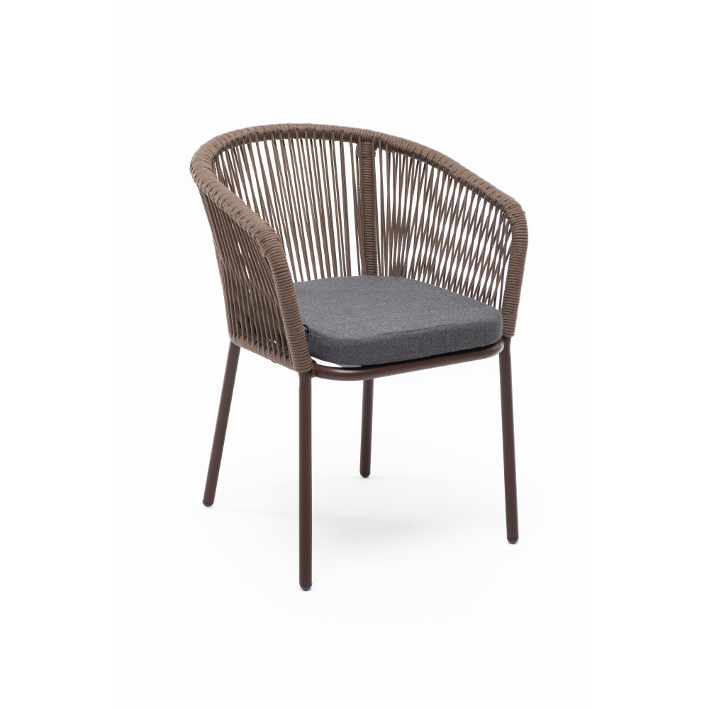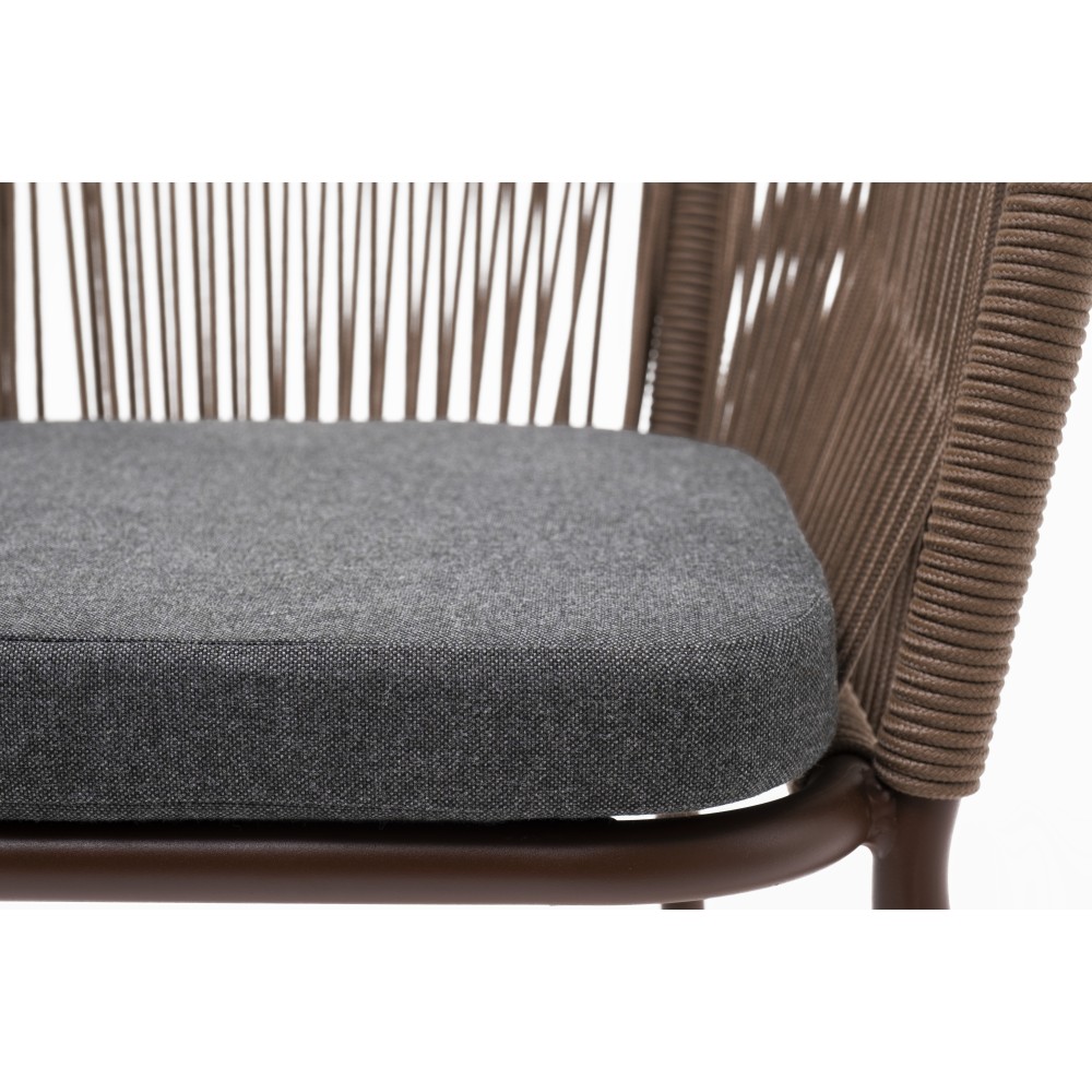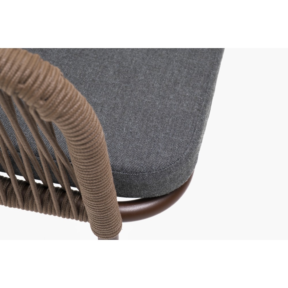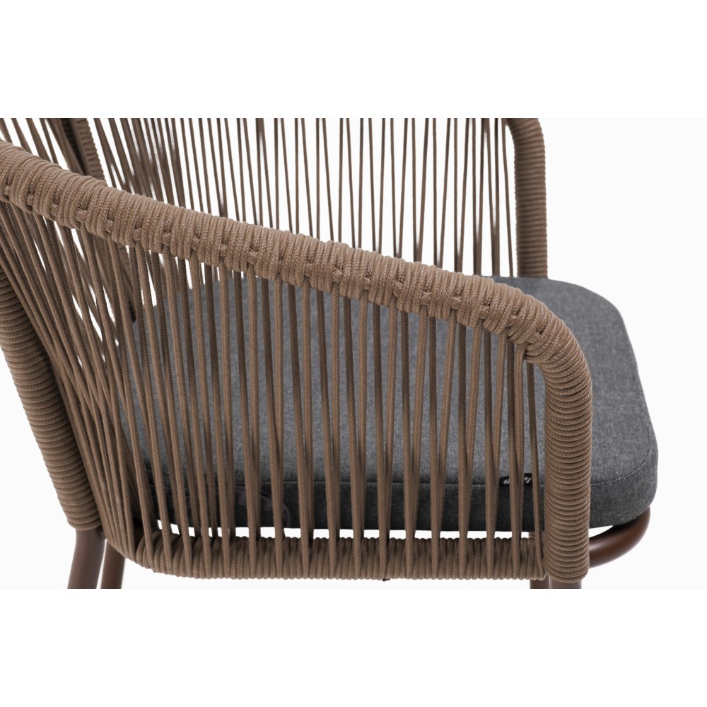 Выполнен из алюминиевого каркаса коричневого (RAL8016) цвета. Оплетка - современный материал «роуп», которым каркас оплетался вручную.