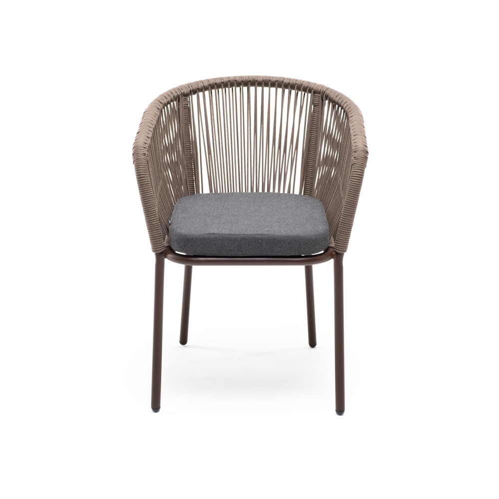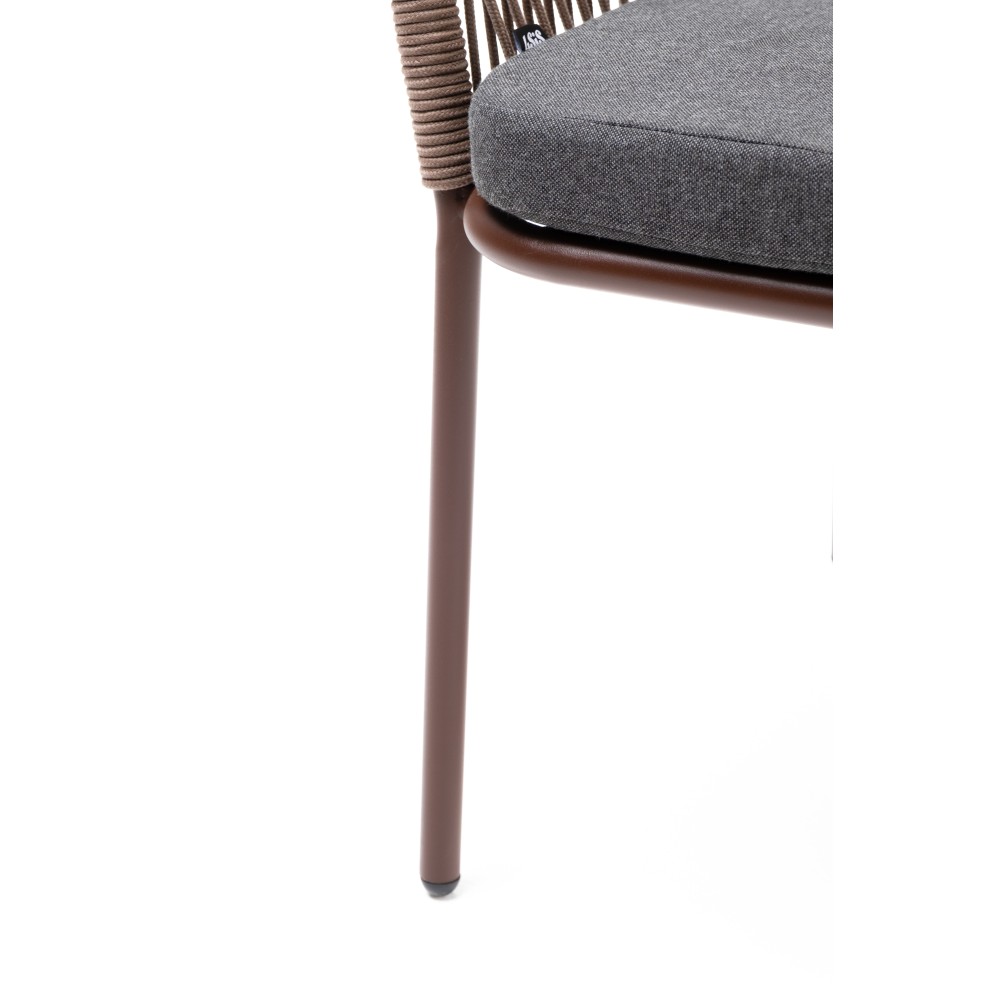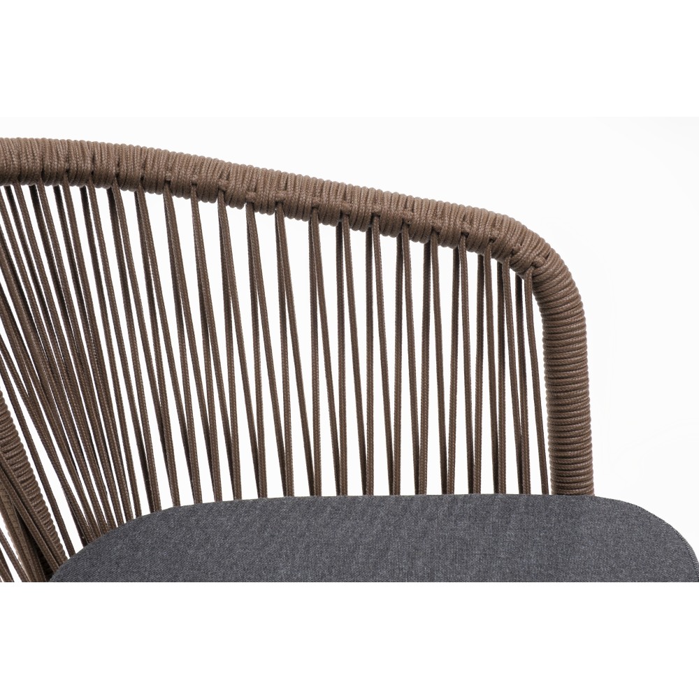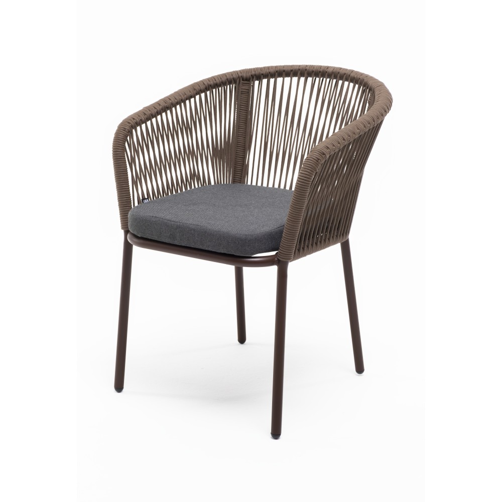 Выполнен из алюминиевого каркаса коричневого (RAL8016) цвета. Оплетка - современный материал «роуп», которым каркас оплетался вручную.