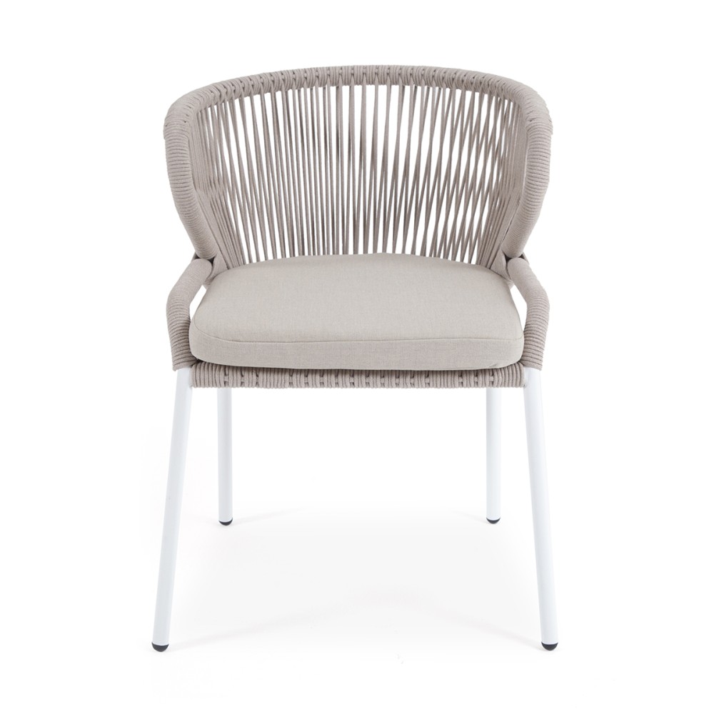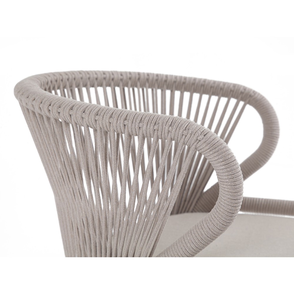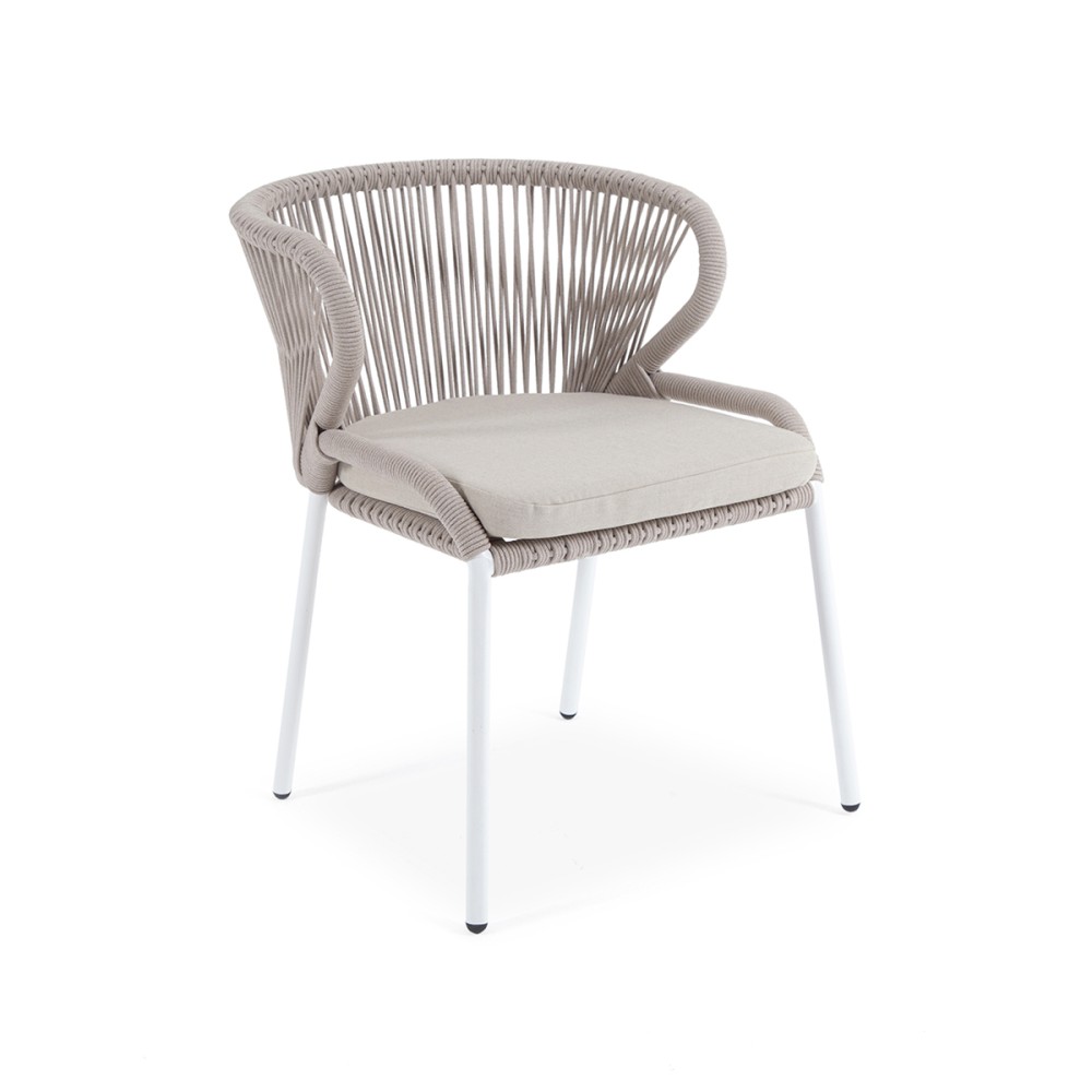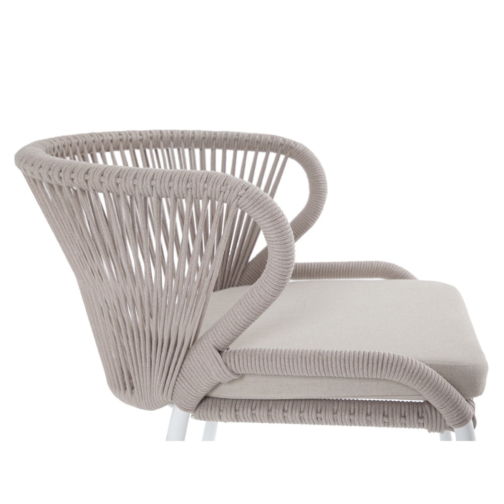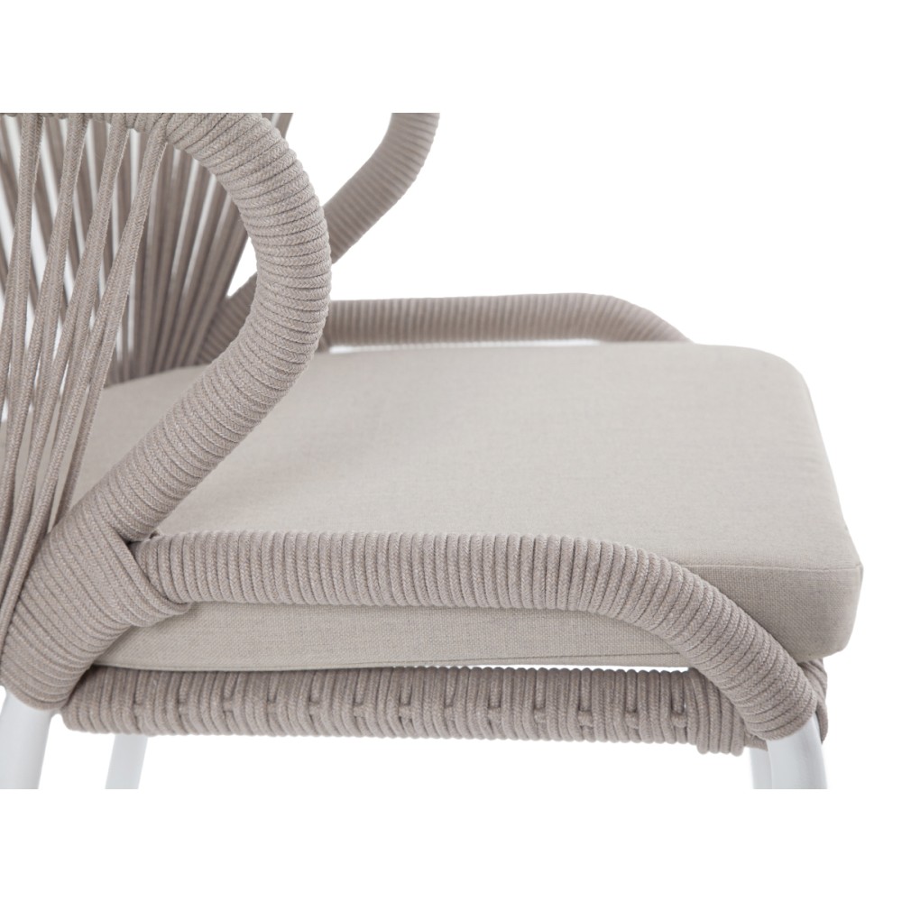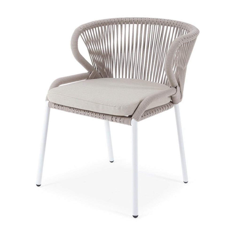Изготовлен из алюминиевого каркаса, оплетенного вручную эластичными синтетическими лентами из высокопрочных полиэфирных волокон (роуп круглый). Цвет каркаса - белый, оплетки - бежевый.