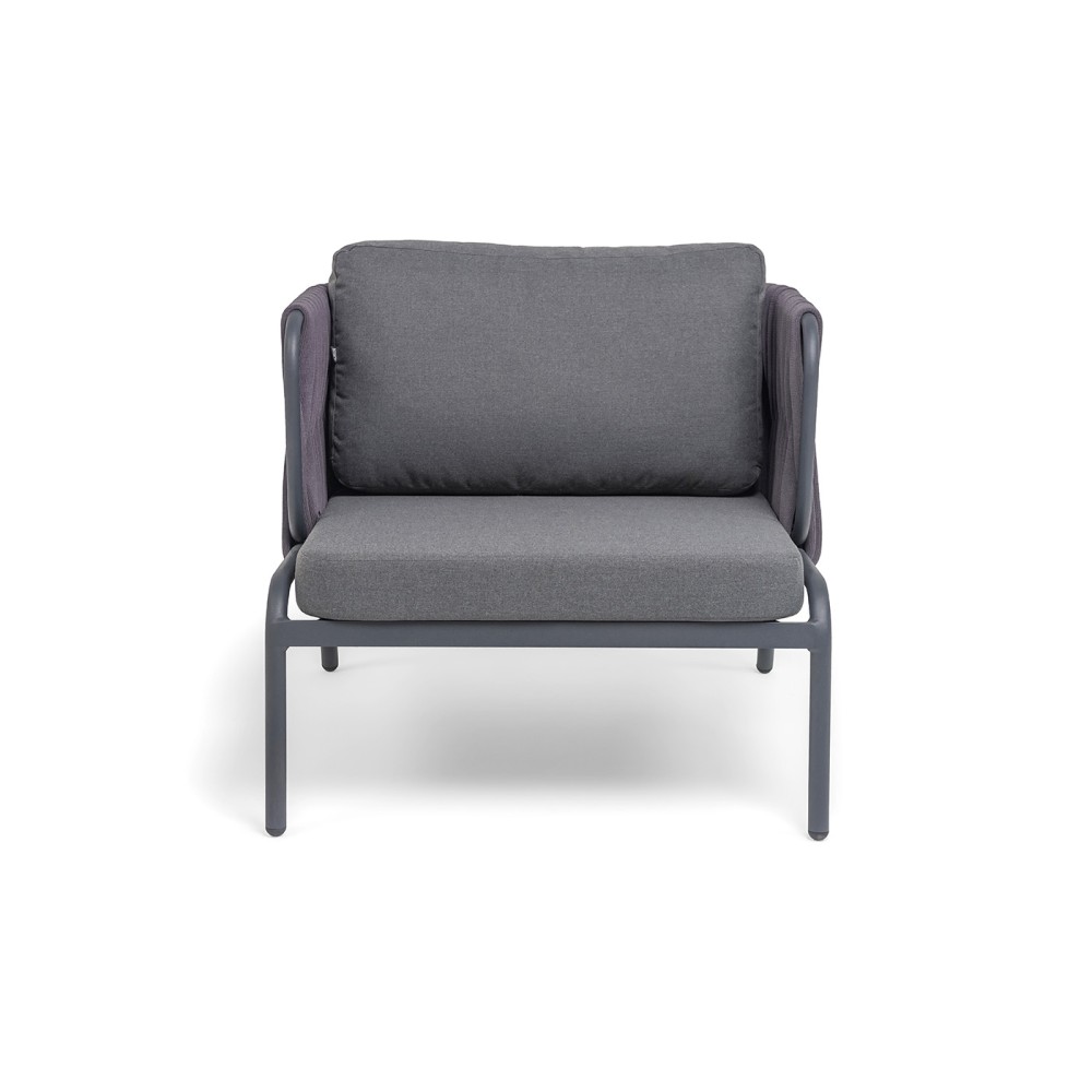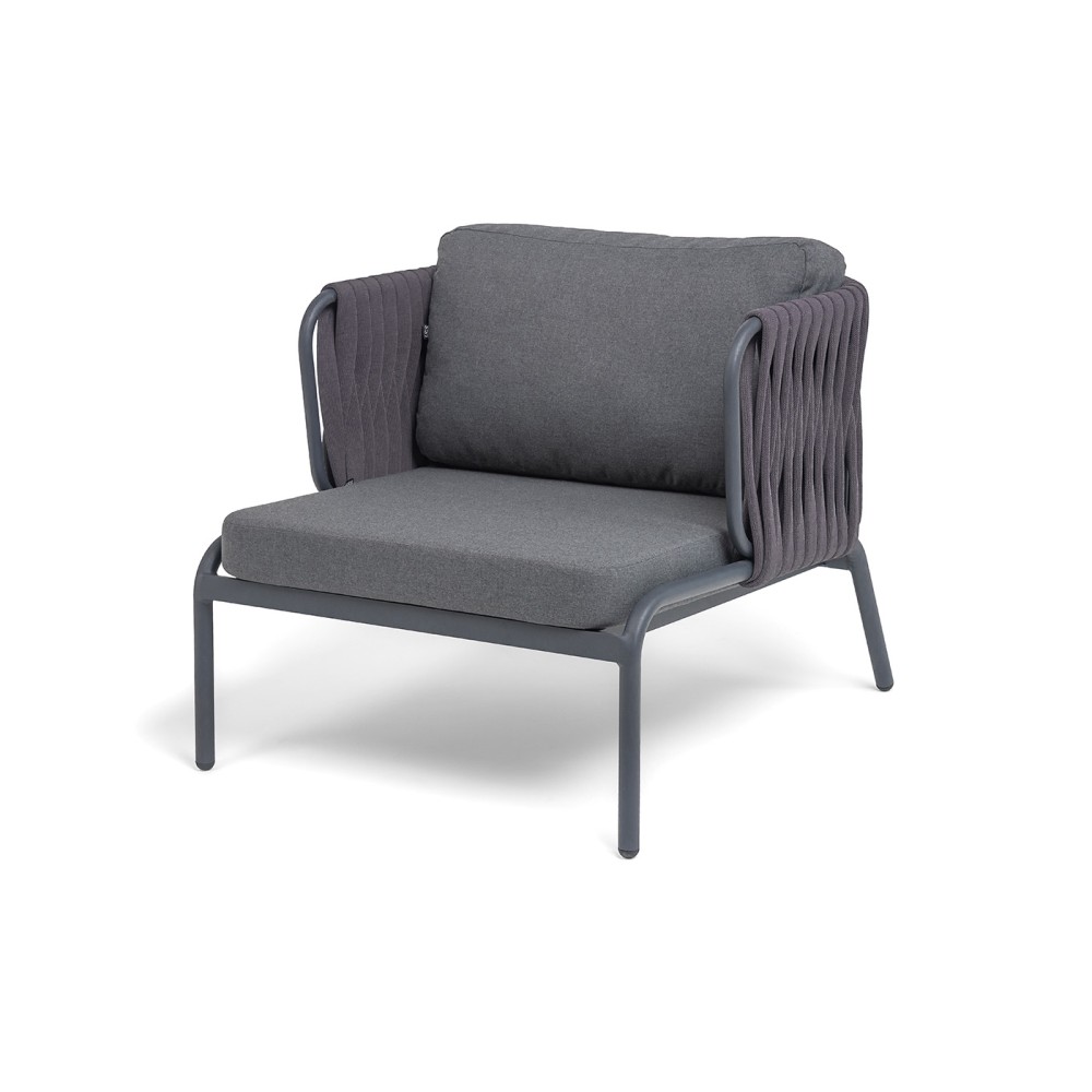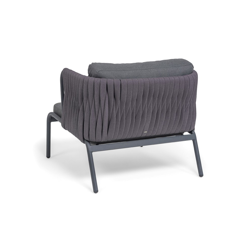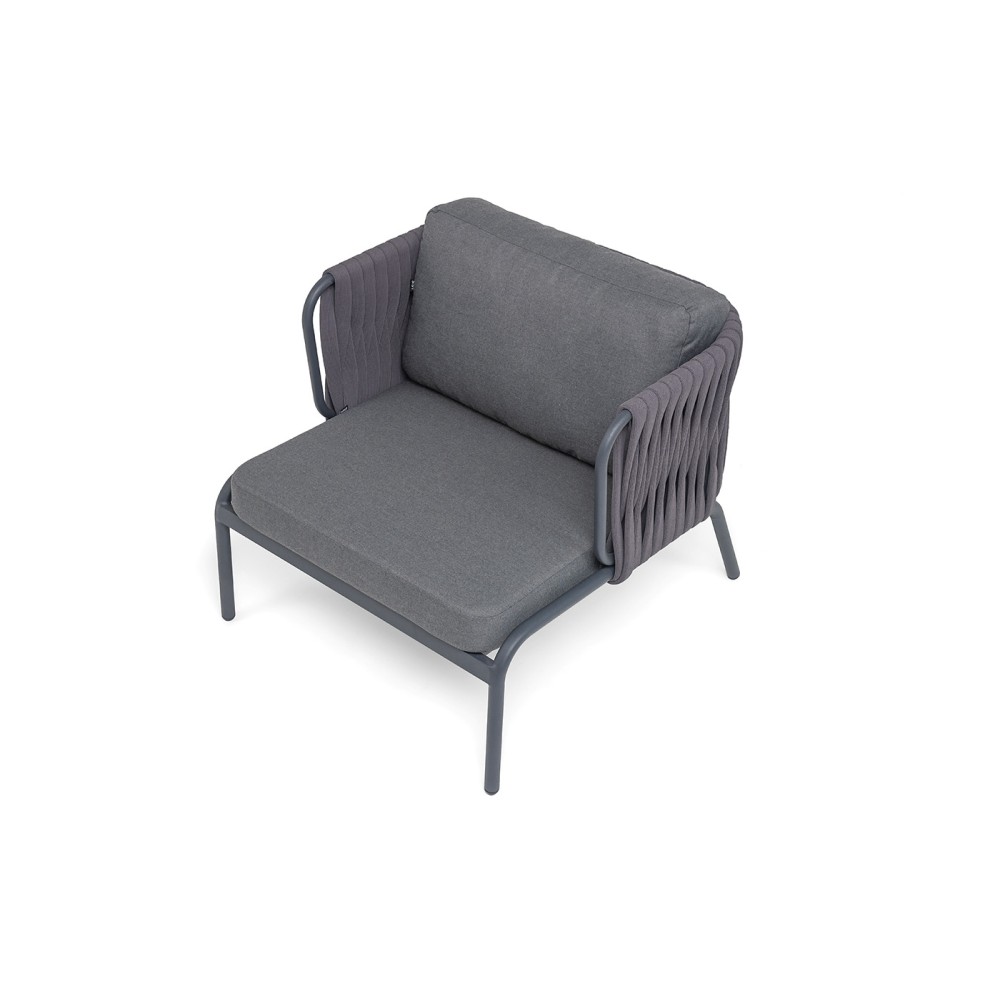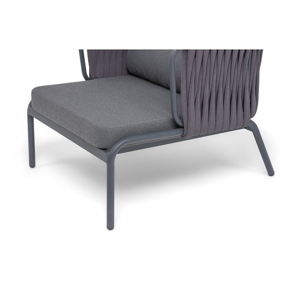 Плетение. Боковины и спинка вручную оплетены роупом — эластичными синтетическими лентами шириной (40 мм) из высокопрочных полиэфирных волокон. Серый оттенок оплетки