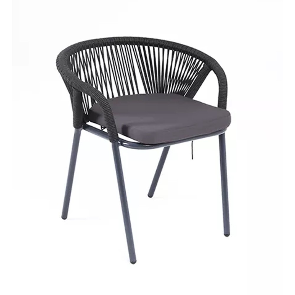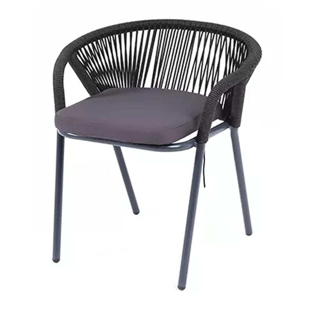 Оплетка выполнена в ручную современным материалом - круглым роупом. Это эластичные синтетические веревки из высокопрочных полиэфирных волокон, предназанченные для изготовления мебели. Цвет оплетки - темно-серый.