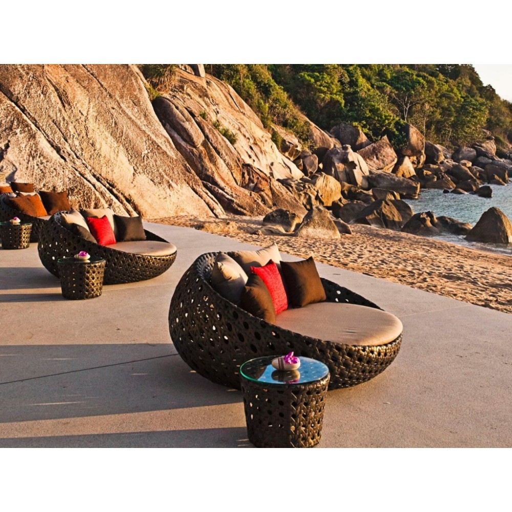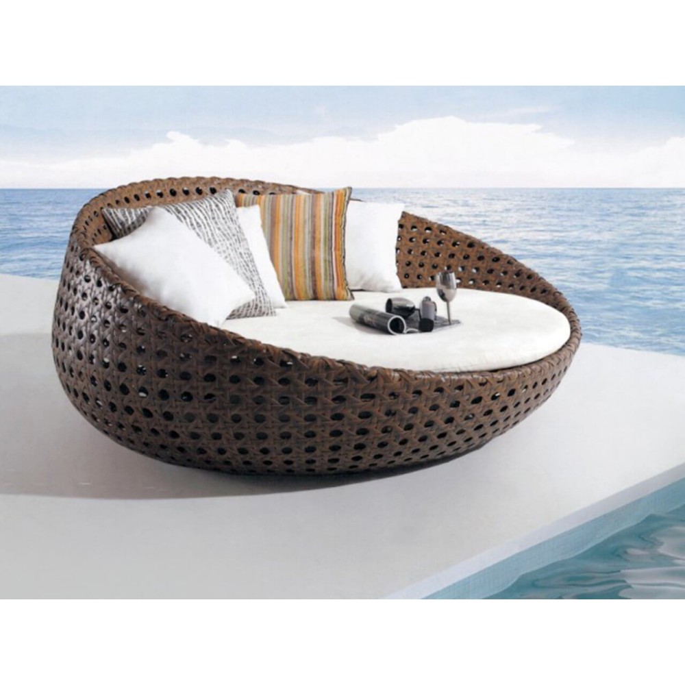 Лаунж лежак Shell будет прекрасным украшением в SPA или на пляже. Экзотический и удобный он будет притягивать к себе любителей комфортно отдохнуть! Комплектуется мягким матрасом из водоотталкивающей ткани (акрил). Толщина: 80 мм. Количество подушек в комплекте поставки: 5 шт. Каркас: алюминий. Плетение выполнено вручную из искусственного ротанга. Тип плетения: плоское. Размеры: Диаметр: 1500 мм. Высота: 860 мм. Объем упаковки: 2.7 куб.м. Открыть инструкцию по уходу. Обратите внимание! Фабрика Tagliamento оставляет за собой право вносить изменения в собственные изделия в любой момент, которые сочтет необходимыми в целях улучшения своих изделий на основании нововведений и требований рынка.