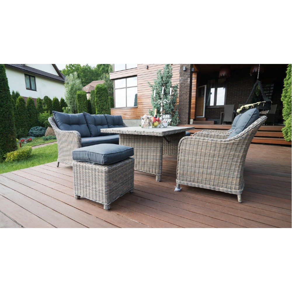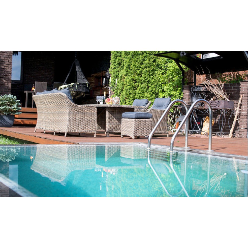 - Искусственное ротанговое плетение — устойчиво к УФ-излучению (не выцветает 3+ сезона), переносит перепады температур от -30°C до +50°C, легко очищается влажной тканью