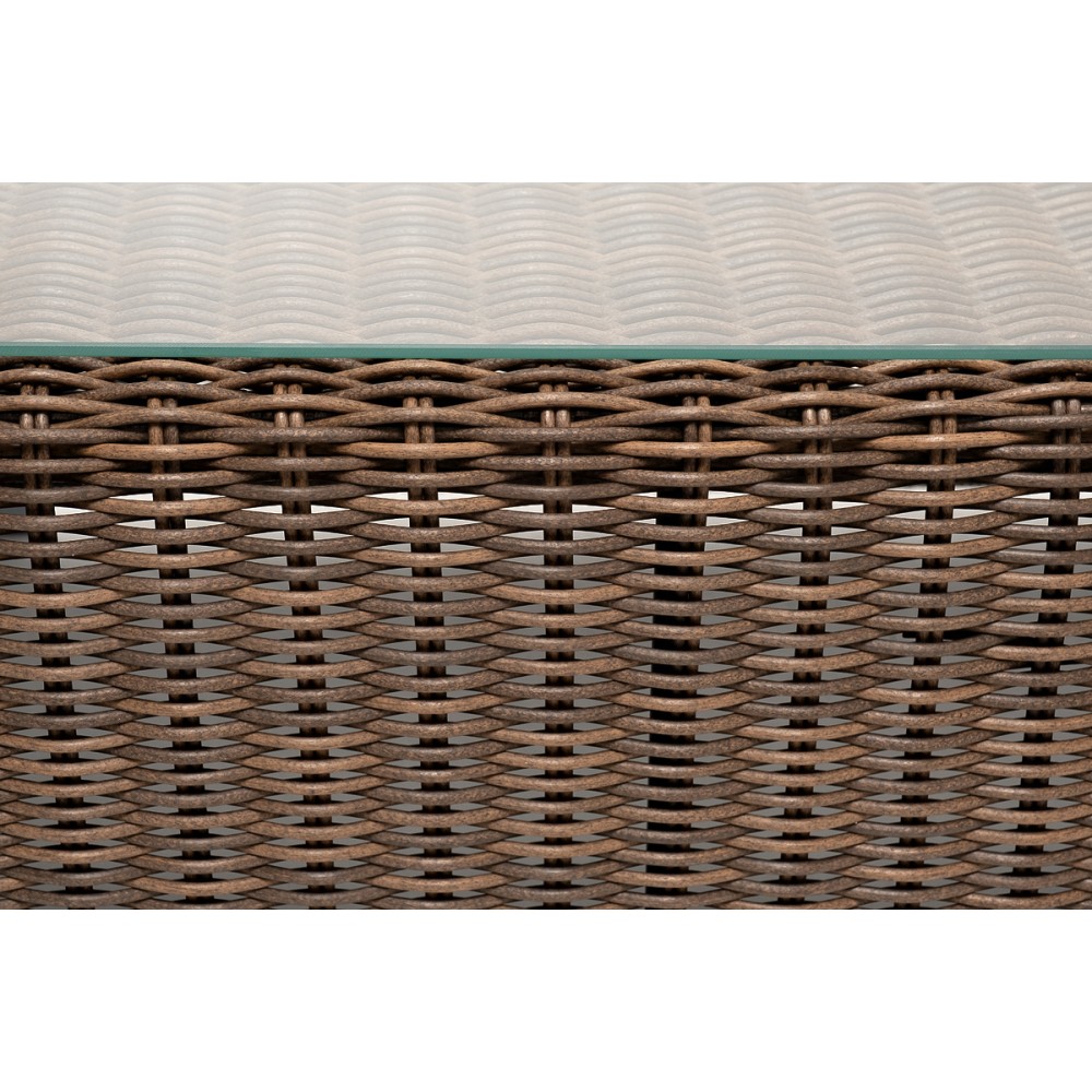 Каркас столика изготовлен из алюминия, вручную оплетенного круглым искусственным ротангом.