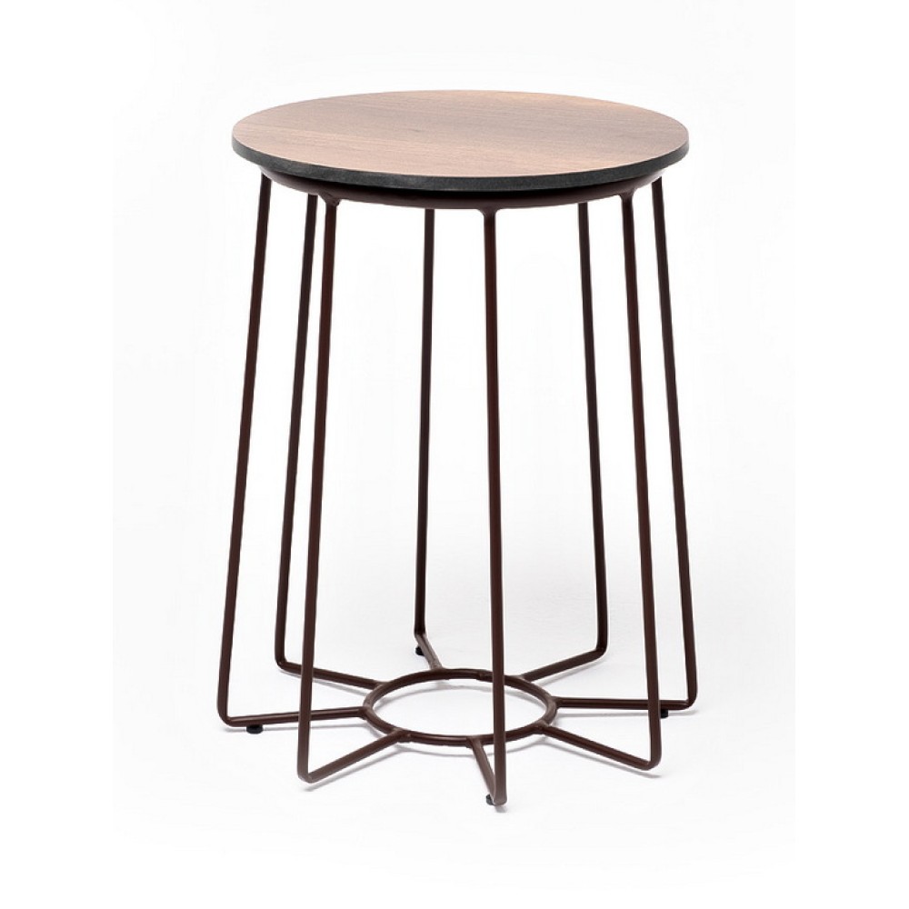 Круглый журнальный столик «Эквадор» каркас изготовлен из алюминия, окрашенного в коричневый (RAL 8016) цвет. Столешница выполнена из высококачественного монолитного компакт-пластика HPL, толщиной 12 мм. Цвет столешницы - «дуб».
