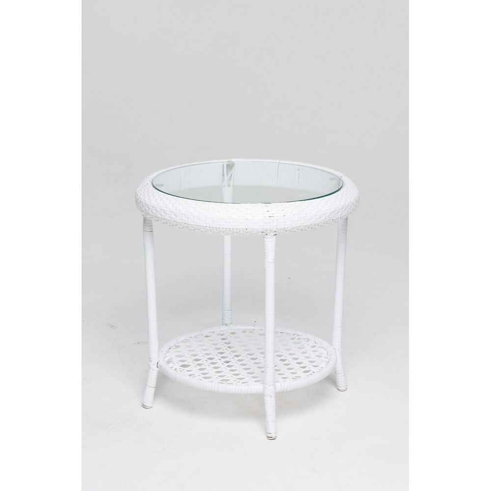 Материалы: каркас - металл, плетение - искусственный ротанг, столешница - стекло.