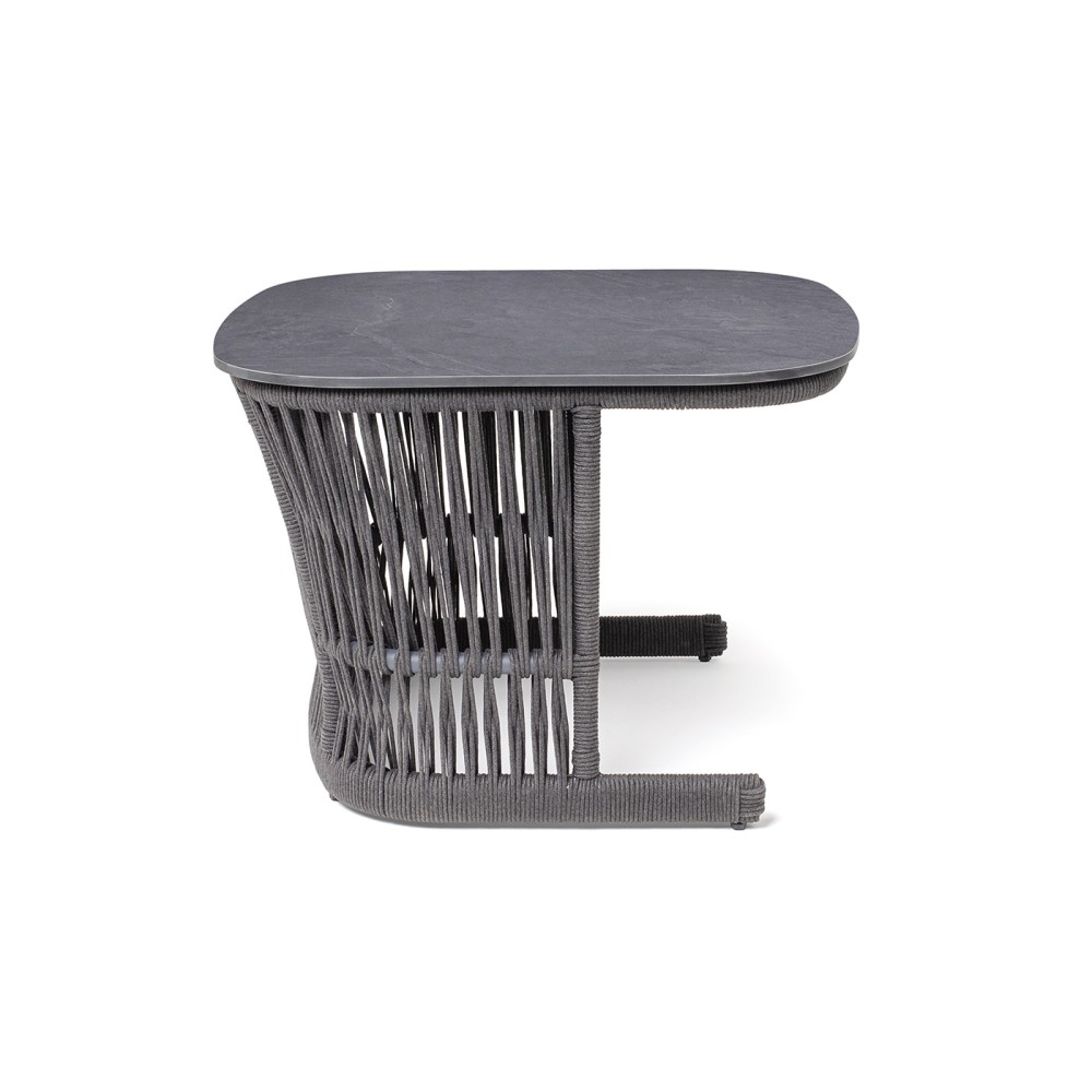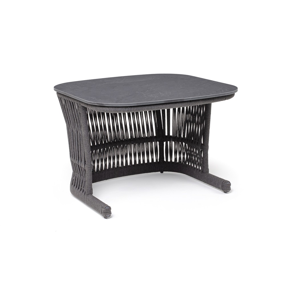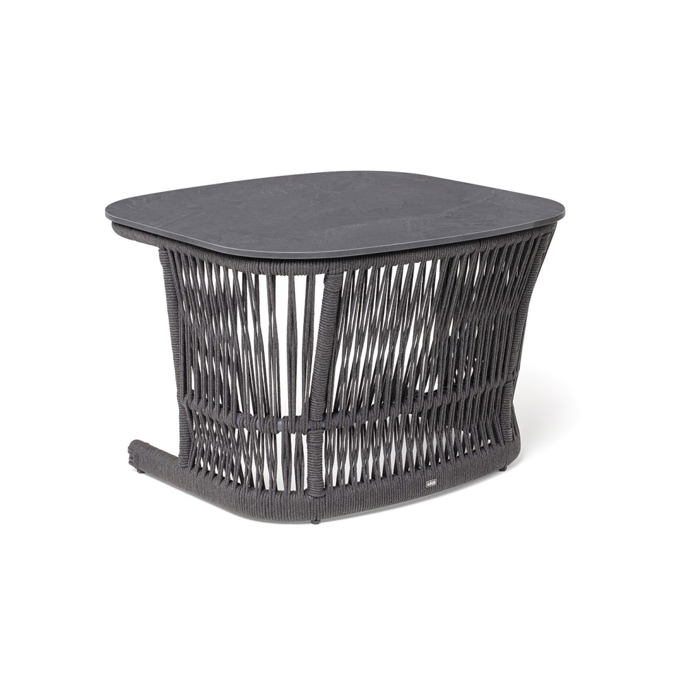 Подстолье - алюминиевая профильная труба, окрашенная износостойкой краской в темно-серый цвет. Нижняя часть задекорирована эластичными синтетическими лентами, состоящими из высокопрочных полиэфирных волокон, аналогичного оттенка.