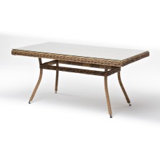 Каркас произведен из прочного алюминия, оплетка которого, выполнена вручную ротангом коричневого цвета. Поверхность защищает стеклянная столешница, толщиной 5 мм..