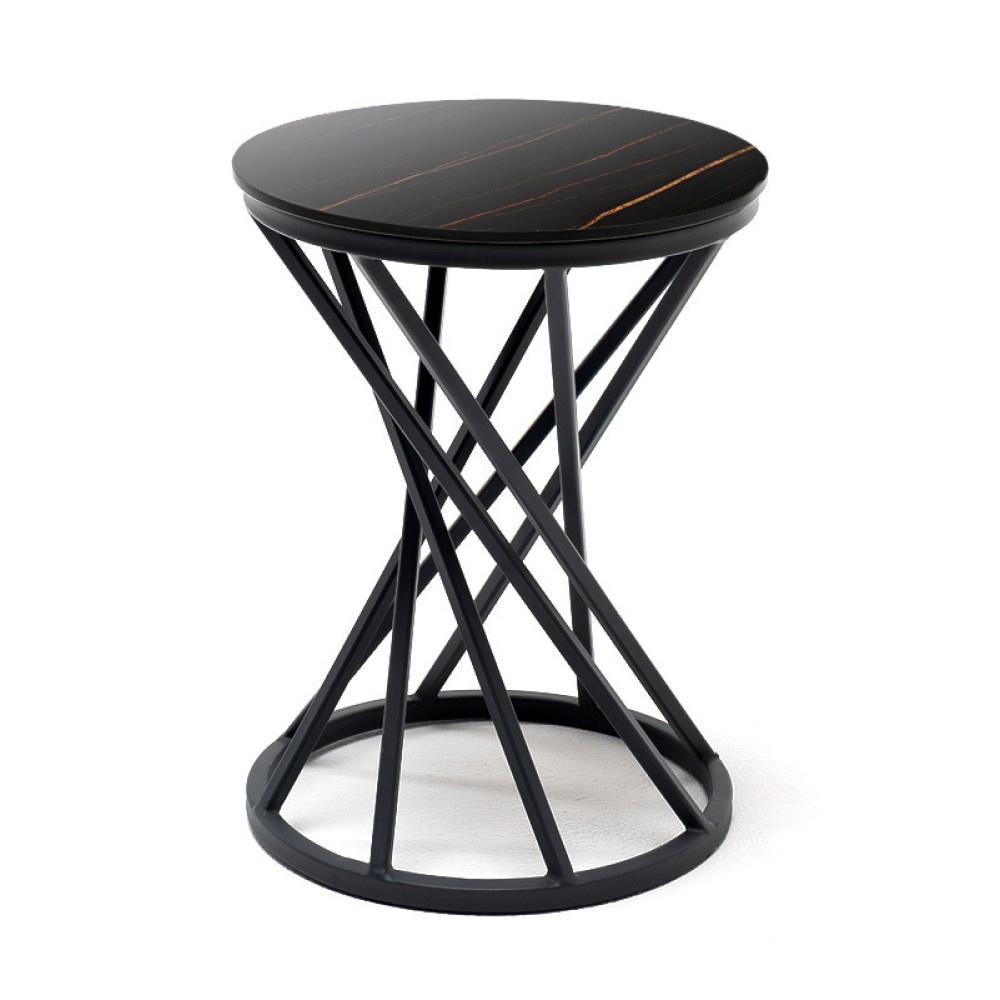 Круглый журнальный столик «Сантьяго» каркас изготовлен из стали, окрашенного в темно-серый цвет. Столешница выполнена из высококачественного монолитного компакт-пластика HPL, толщиной 12 мм. Цвет столешницы - «черный мрамор».