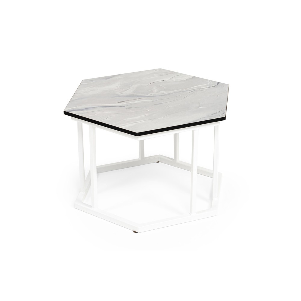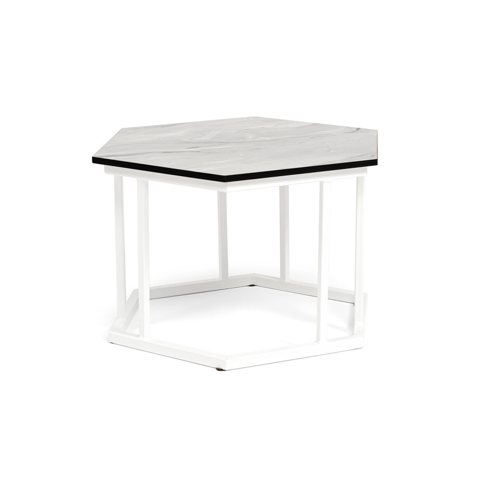 Интерьерный стол «Женева» - прекрасное решение для создания зоны отдыха на балконе, в гостиной или на летней веранде ресторана. Шестиугольный стол имеет диаметр 50 см и высоту 35 см.