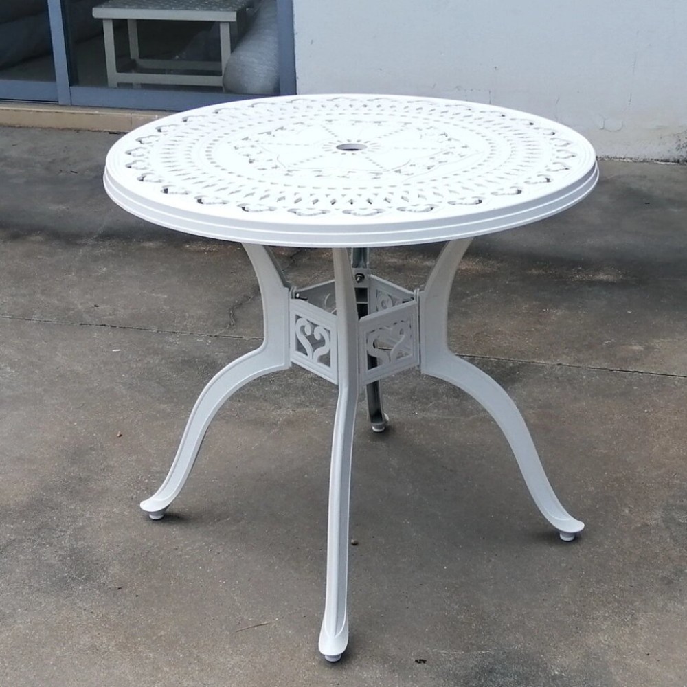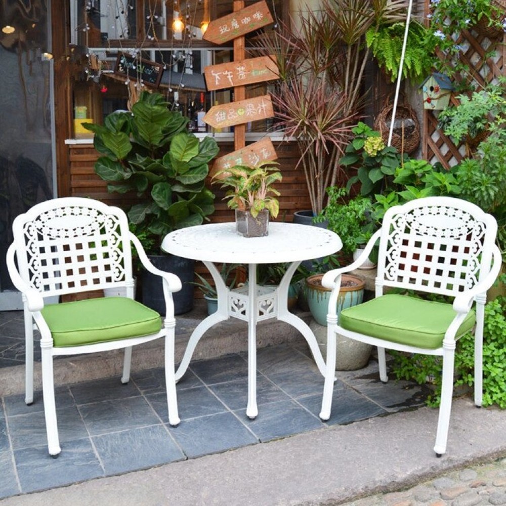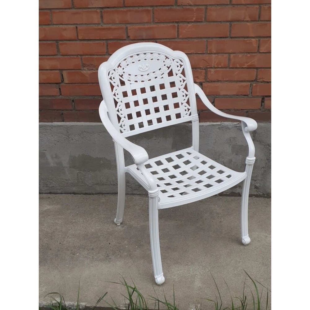 Набор белой садовой мебели из литого алюминия с небольшим круглым столом можно купить для загородного дома, беседки, террасы или веранды. Металлический комплект Vienna 2 состоит из круглого белого стола из алюминия и 2 литых кресел из алюминия с бежевыми подушками.Цвет: белыйРазмеры стола и вес: 80х73 см/ 9,9 кг.Размеры и вес кресла – 59,х62х89 см/ 8 кг,