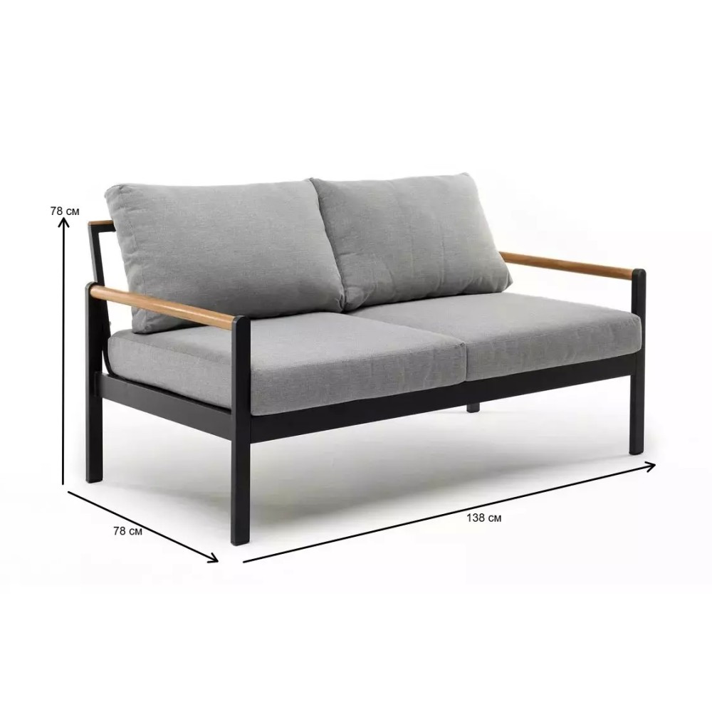 Современный и эргономичный элемент для организации стильной лаунж-зоны, воплощающий эстетику минимализма и безграничные возможности комфорта. Двухместный диван МАЯ выполнен из прочного алюминиевого каркаса с порошковым покрытием в оттенке «темно-серый графит» с элементами натурального тика и дополнен глубокими мягкими подушками из ткани Олефин, создавая идеальное место для неспешных посиделок с чашкой чая или кофе на террасе, у бассейна или в саду.