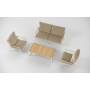 Особенности: подлокотники и планки столешницы из благородного тика, премиальная уличная ткань, съемные чехлы подушек на "молнии", дополнительно можно приобрести комплект защитных чехлов
