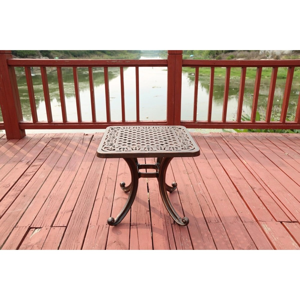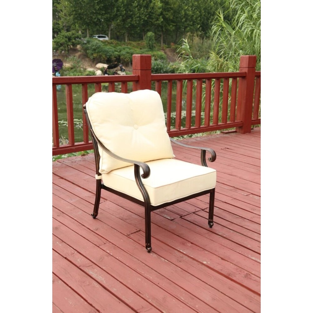 Садовый металлический комплект мебели из литого алюминия для отдыха с небольшим журнальным столом вмещает до 7 человек. Такой набор из легкого металла будет отлично смотреться в Вашем загородном доме, в беседке, на террасе или веранде. Он состоит из журнального столика, двух кресел, одного двухместного дивана и одного трехместного дивана с бежевыми подушками.Цвет: античная бронза.Размеры, вес:Кресло - 77*75.9*82 см/ 11,5 кг.Диван на 2 персоны - 137*75.9*82 см/ 19 кг.Журнальный стол - 123*64*48 см/ 10 кг.Кофейный столик - 56*56*52 см./ 8,5 кг.Диван на 3 персоны - 197*75.9*82 см/ 26 кг.Бесплатная доставка до подъезда по Москве и МО.