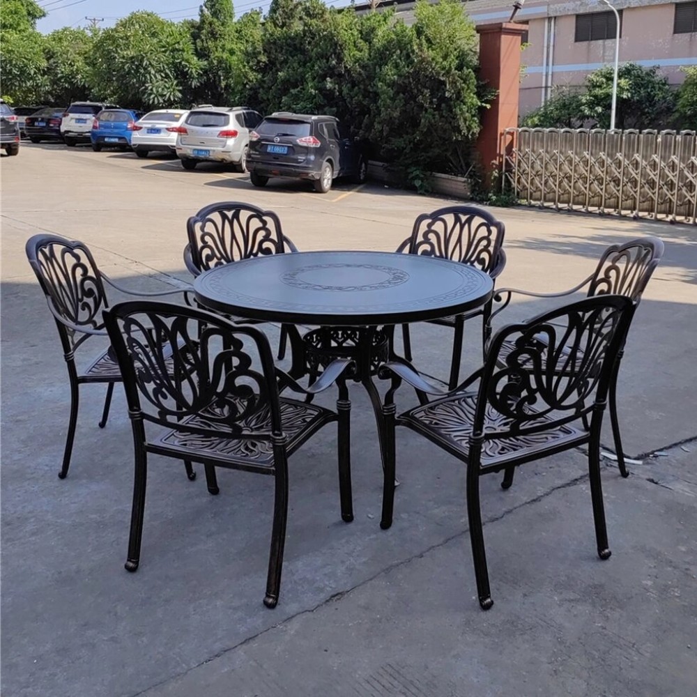 Красивый и вместительный комплект садовой металлической мебели Seville из алюминия можно поставить не только в доме, но и на улице или веранде. Данный набор мебели из металла состоит из круглого стола и 6 кресел из алюминия с подушками.Цвет: античная бронзаРазмеры стола: 120х73 смРазмер упаковки: 123х123х7 смОбъем стола: 0.13 м/3Вес: 20кг.Кресло – 61х64х93 см/ 7,3 кг,