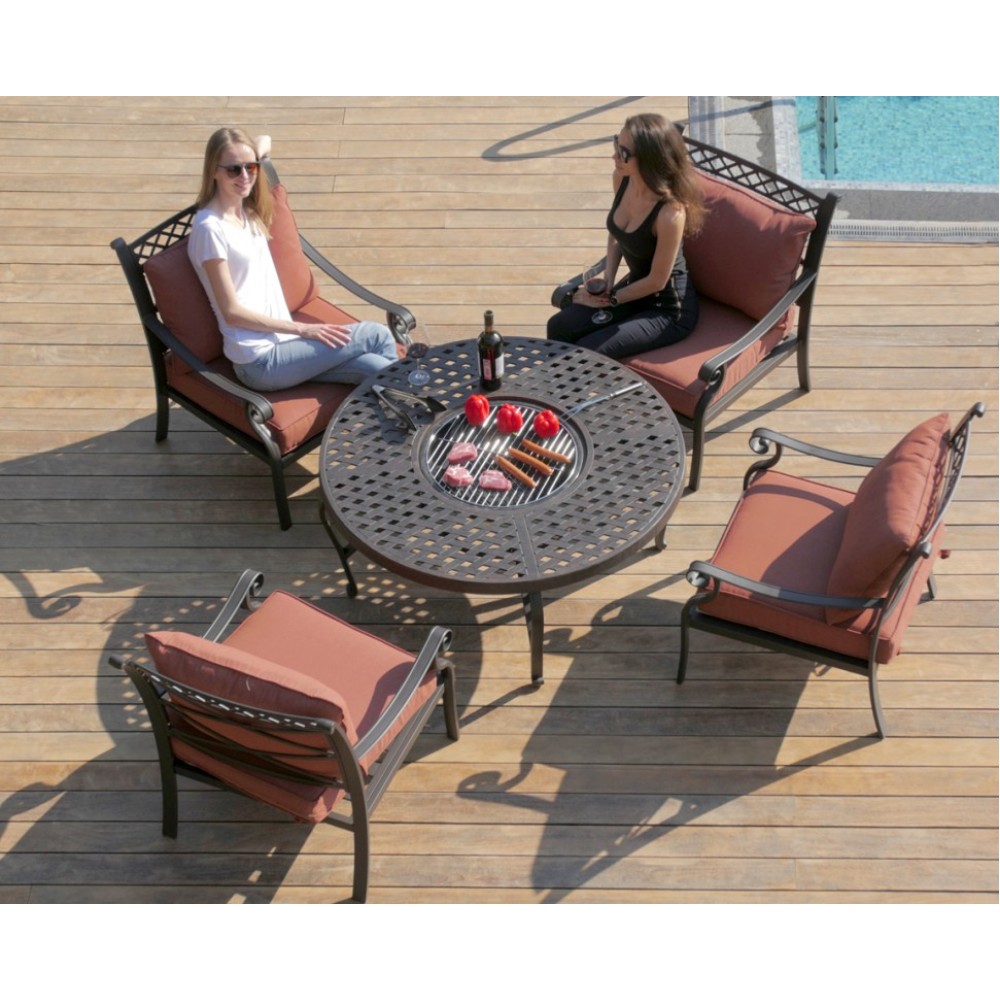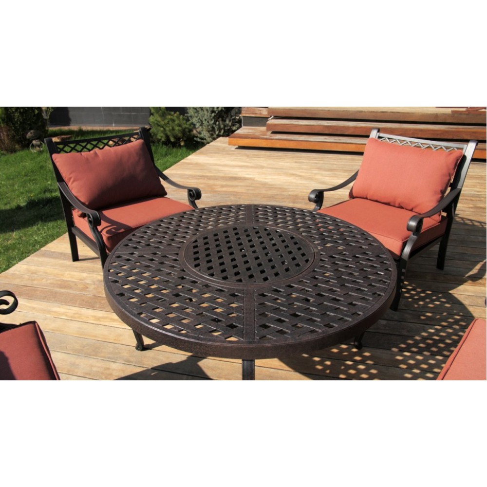 Литой алюминий является более предпочтительным материалом для садовой мебели, поскольку он не только устойчив к коррозии, но и имеет легкий вес. Преимущества мебели из литого алюминия - это способность выдержать любые капризы природы, можно даже оставить под открытым небом на зиму.