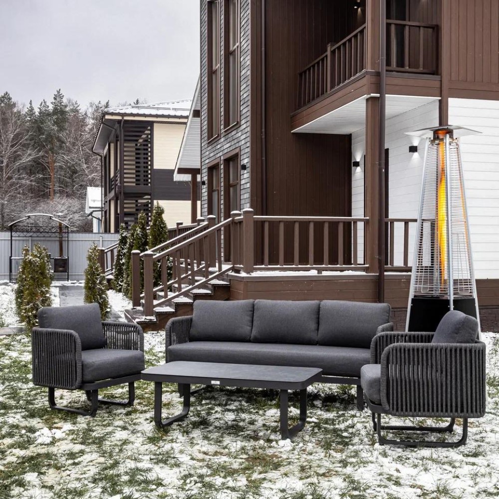 Комплект мебели ADRIAN — это эталон современного уличного дизайна. Лаконичные формы из литого алюминия, прочное веревочное плетение (роуп) и удобные подушки создают идеальное место для релакса. Готов прослужить вам долгие годы, не теряя вида под солнцем и дождем.