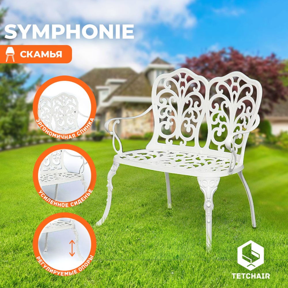 Визуальная красота и изящество прекрасно сочетаются в дизайне двухместной садовой скамьи Secret De Maison Symphonie из коллекции JARDIN. Высокое качество и неповторимые кованые узоры добавят благородства в ваш ландшафтный дизайн, подчеркнут вкус и статус своего владельца. Эргономичная спинка и подлокотники располагают к комфортному отдыху и приятному времяпрепровождению на свежем воздухе. Высокая прочность каркаса из литого алюминия, устойчивость к любым погодным условиям, способность выдерживать большие нагрузки и простота в уходе выгодно выделяют скамью Symphonie среди садовой мебели. Модель прекрасно сочетается с мебелью из коллекции JARDIN, поставляется в разобранном виде. Для вашего удобства можно дополнительно приобрести декоративную подушку из нашей коллекции текстиля.