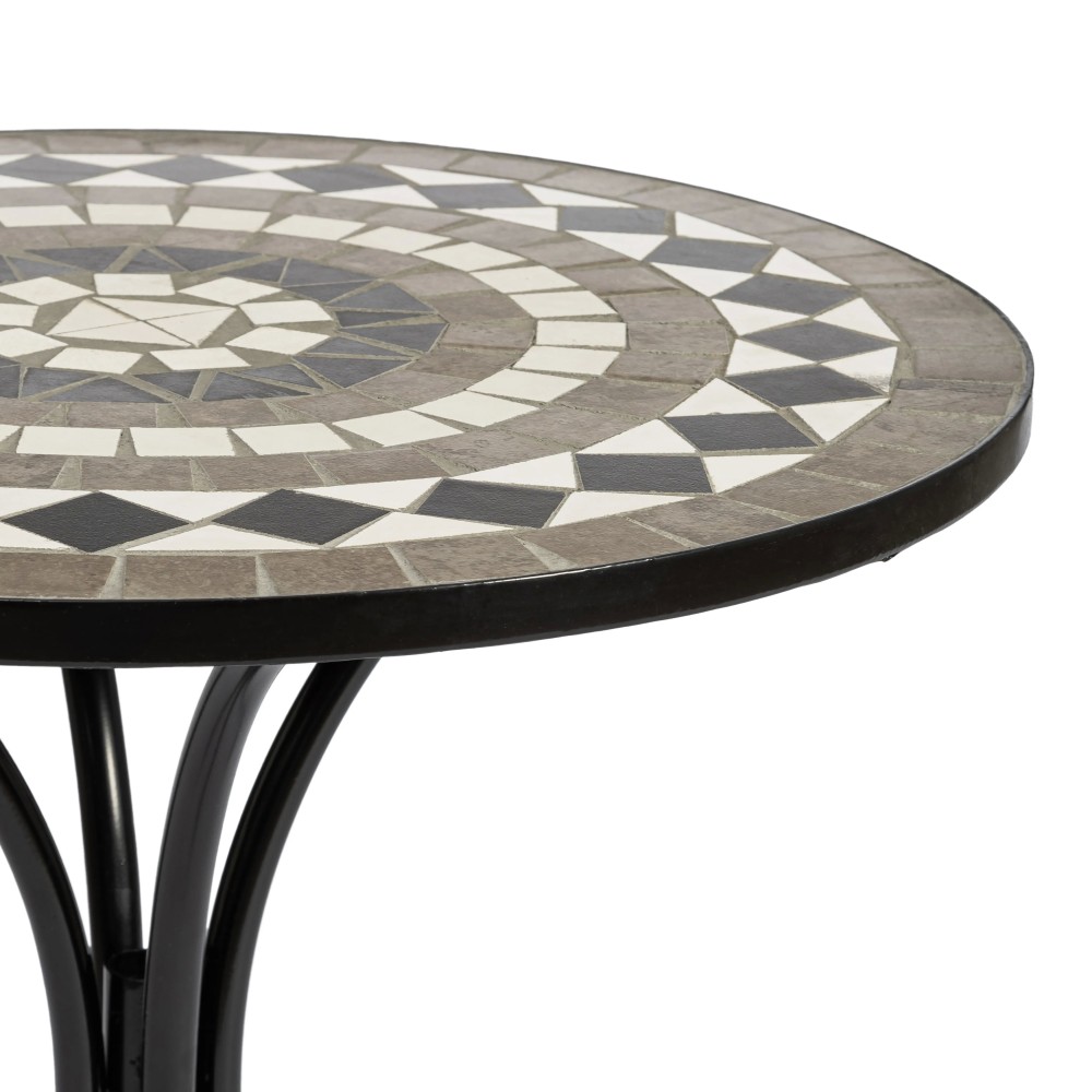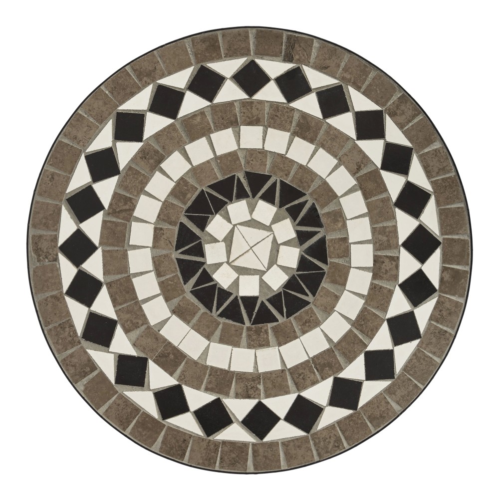 Изящная форма и изысканный дизайн компактного столика Secret De Maison Romeo/Ромео из коллекции Beaujolais/Божоле не только выгодно выделяют его в интерьере, но и помогут создать гармоничное пространство на загородной веранде, городском балконе или приусадебном участке. Столешница, декорированная оригинальным винтажным орнаментом из мозаики, и прочный каркас, изготовленный из стального сплава с напылением краски, выглядят дорого, элегантно, добавят ноты изысканности и индивидуальности в ваш интерьер. Удобные размеры и простота конструкции позволяют использовать столик Romeo/Ромео, как по прямому назначению, так и в качестве дополнительной сервировочной поверхности. Модель практична, надежна, устойчива к воздействию влаги, температурным перепадам и проста в уходе. Прекрасно сочетается с мебелью из коллекции Beaujolais/Божоле, поставляется в разобранном виде.