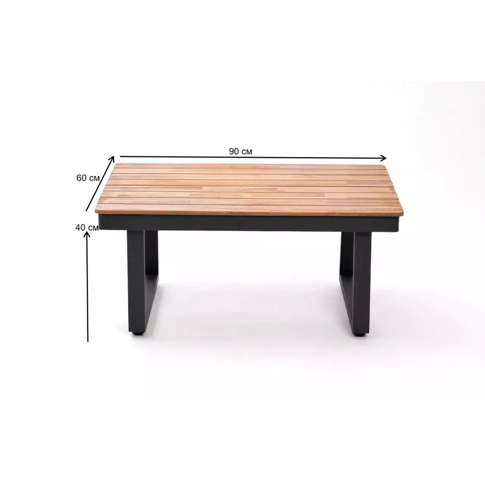 Современный и функциональный элемент для организации стильной лаунж-зоны, воплощающий эстетику минимализма и безграничные возможности комфорта. Прямоугольный кофейный стол ТОПА выполнен из прочного алюминиевого каркаса с порошковым покрытием в оттенке «темно-серый» с элементами натурального массива акации, создавая идеальное решение для тех, кто ценит функциональность, долговечность и атмосферу неспешных посиделок с чашкой чая или кофе на террасе, у бассейна или в саду.