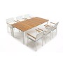 Каркас из алюминия с порошковым покрытием в белом матовом цвете обеспечивает защиту от коррозии, а элементы из массива тика, обработанные натуральным маслом, добавляют естественного тепла.